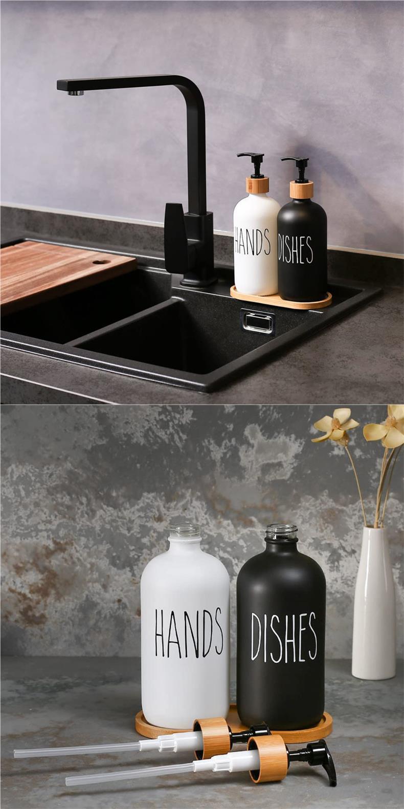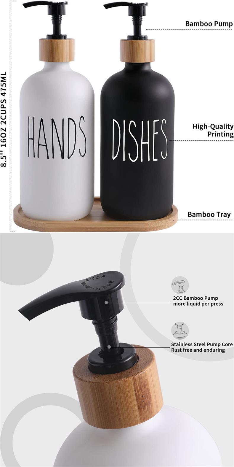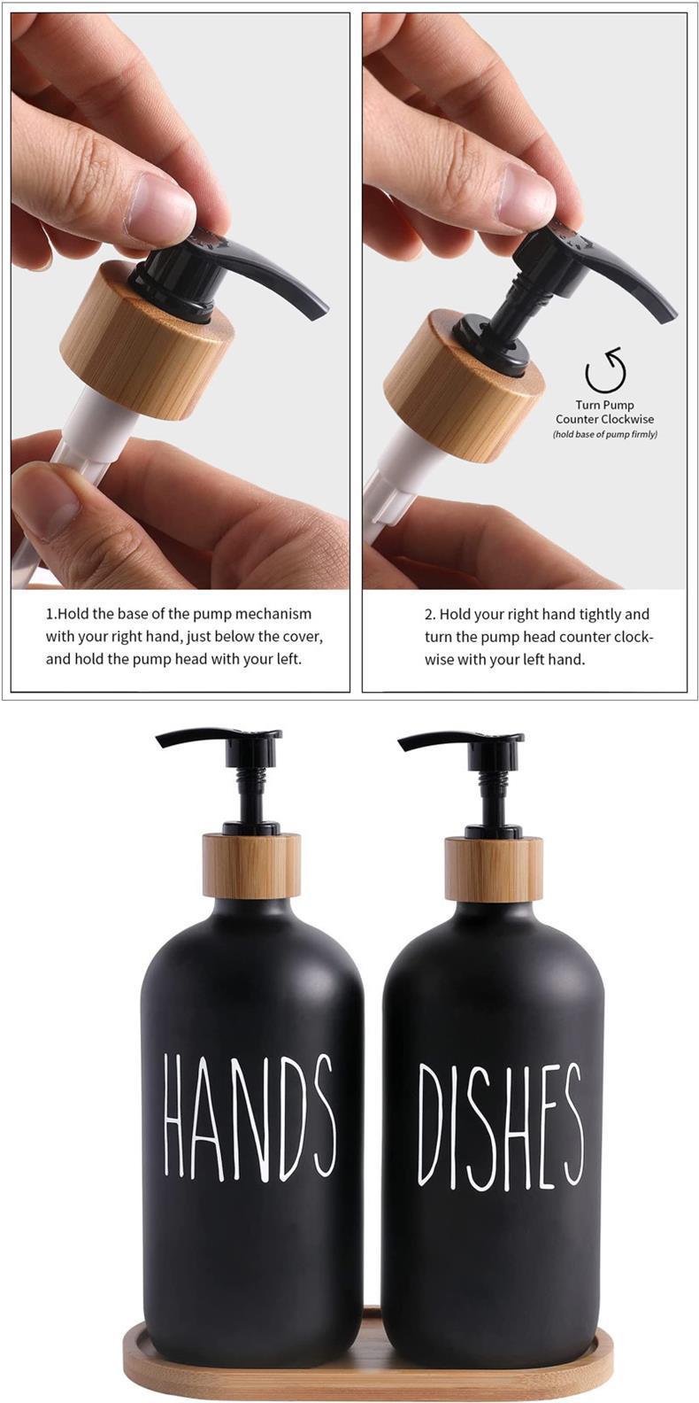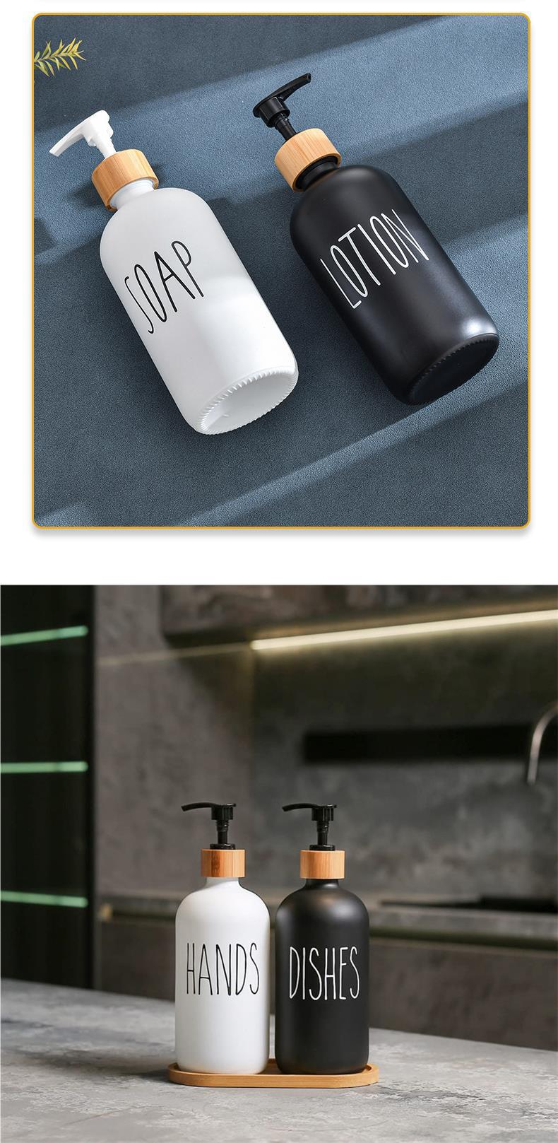 16oz white bottle dishes + wooden circle pump head, 16oz black bottle dishes + wooden circle pump head, 16oz w...