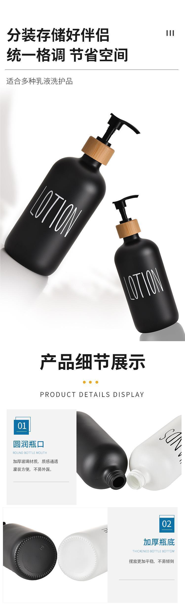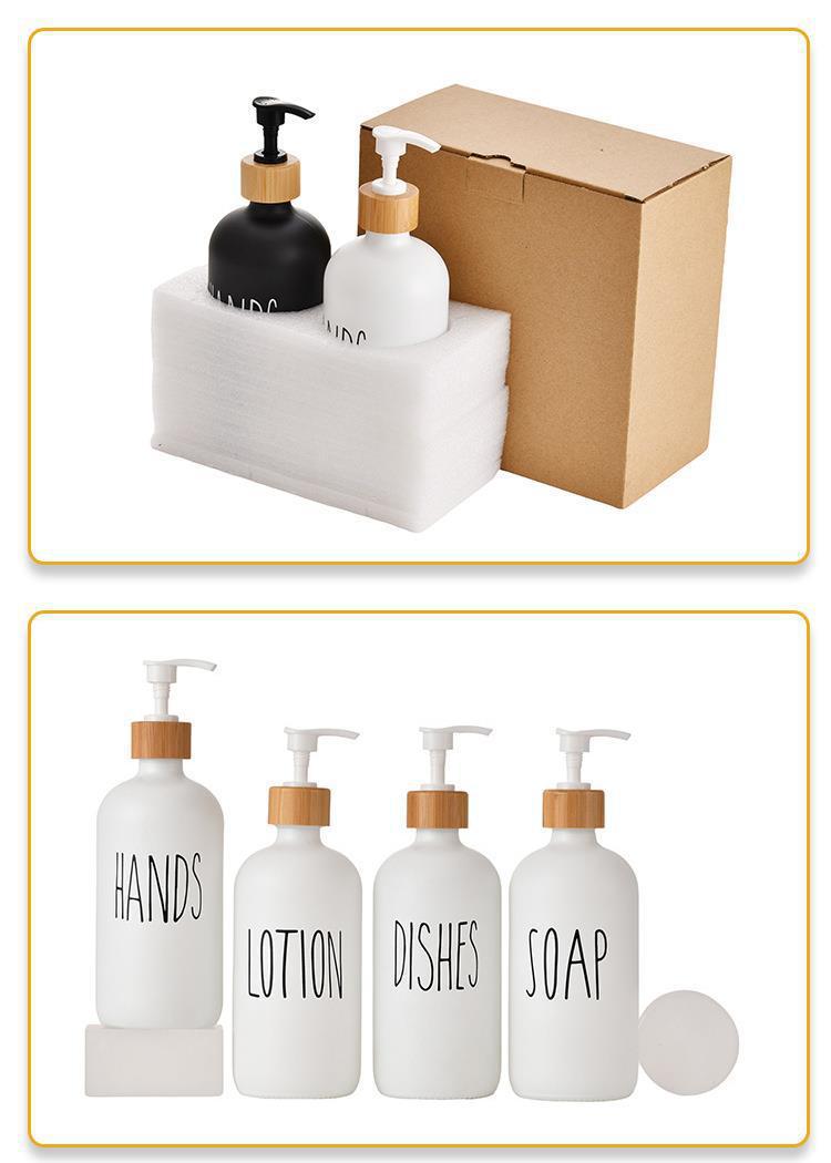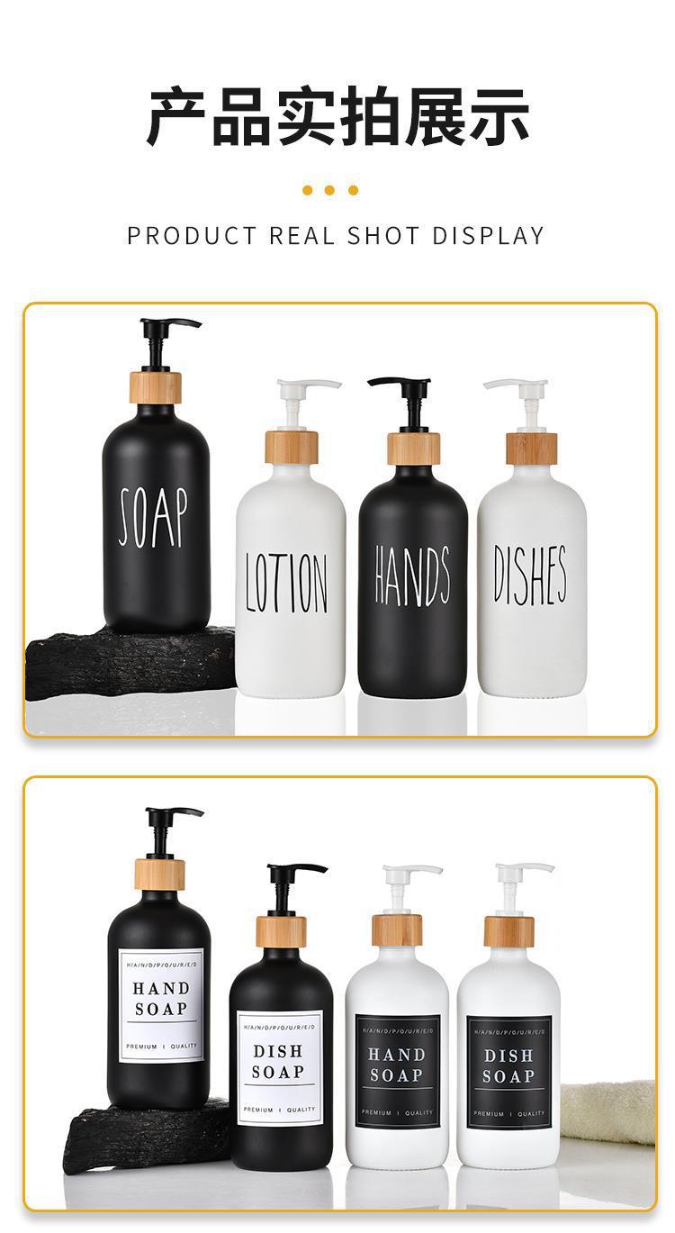 Botella de Gel de Ducha de Amazon Transfronterizo Botella de Vidrio para Desinfectante de Manos Botella Recargable Botella Boston Blanca y Negra Cabezal de Bomba de Madera de Bambú