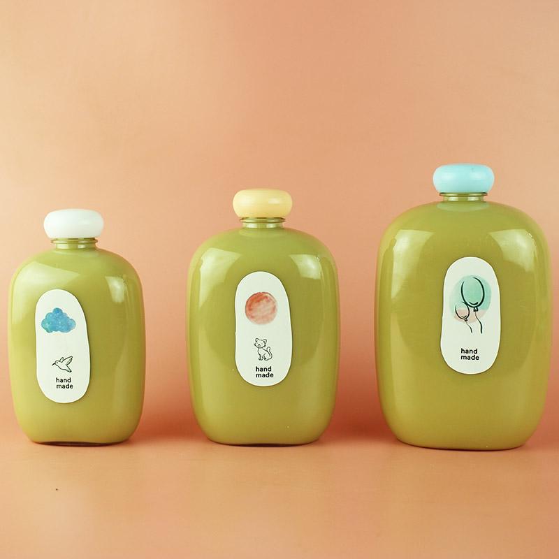 2 each of 250/350/500 (1 each of black lid and white lid) fruit milk bottle