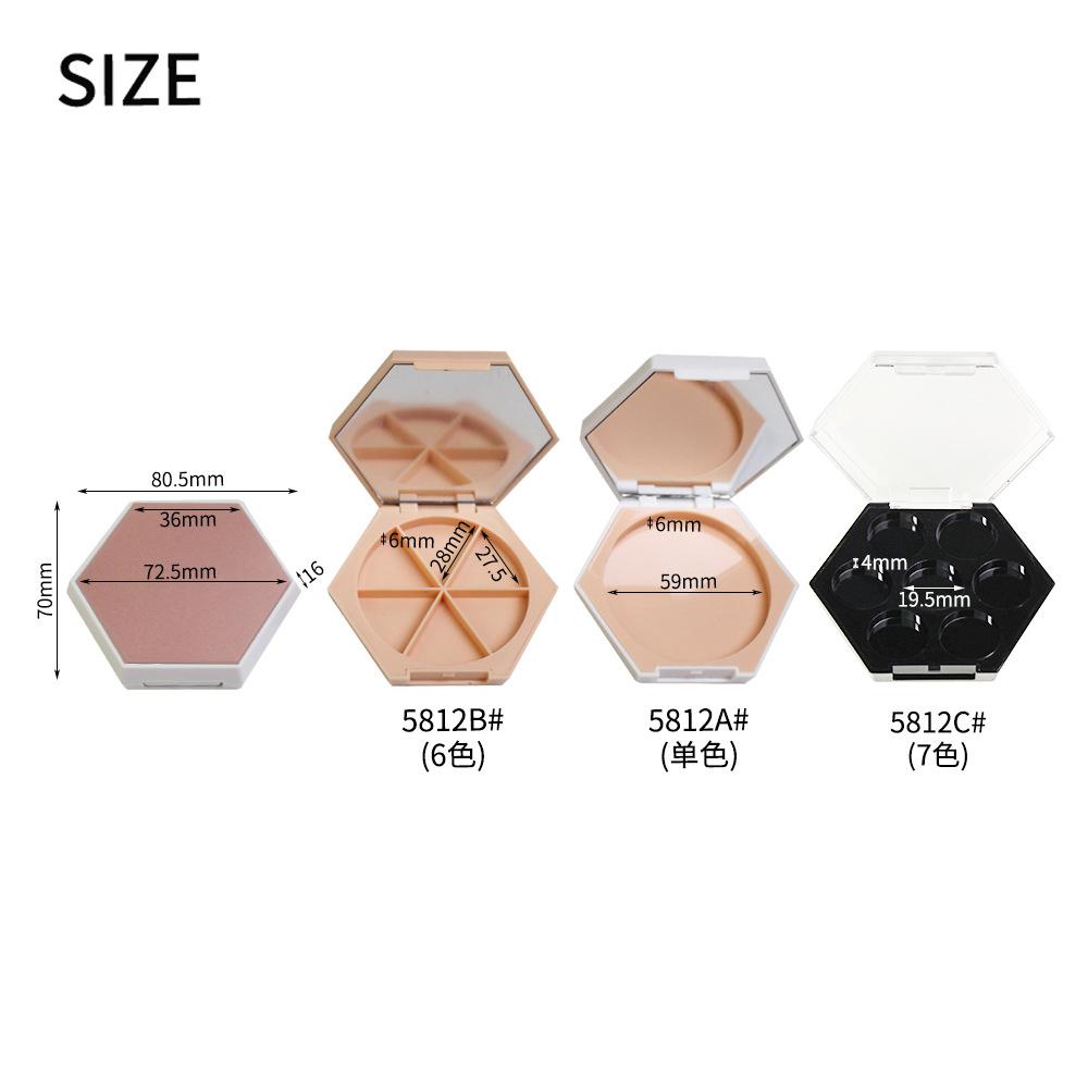 Fabricante Personalizado Hebilla Hexagonal Paleta de Sombras de Ojos de una Sola Cuadrícula/Seis Cuadrículas/Siete Cuadrículas y Caja de Polvo Material de Embalaje de Plástico