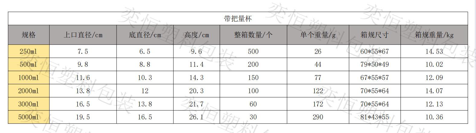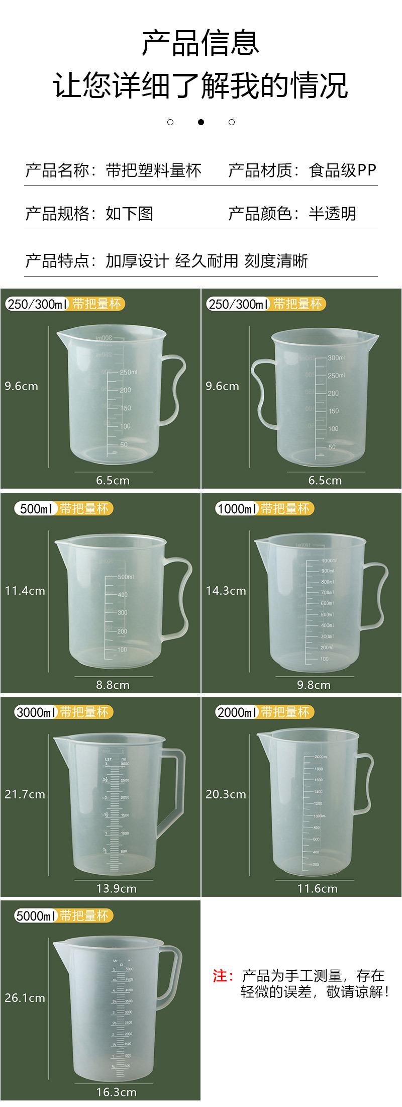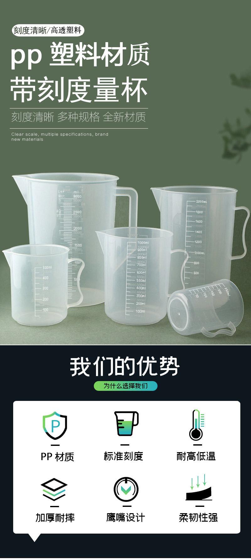 Vaso Medidor de Plástico Engrosado con Escala y Asa 250Ml300Ml500Ml1000Ml Taza Medidora para Té con Leche y Horneado