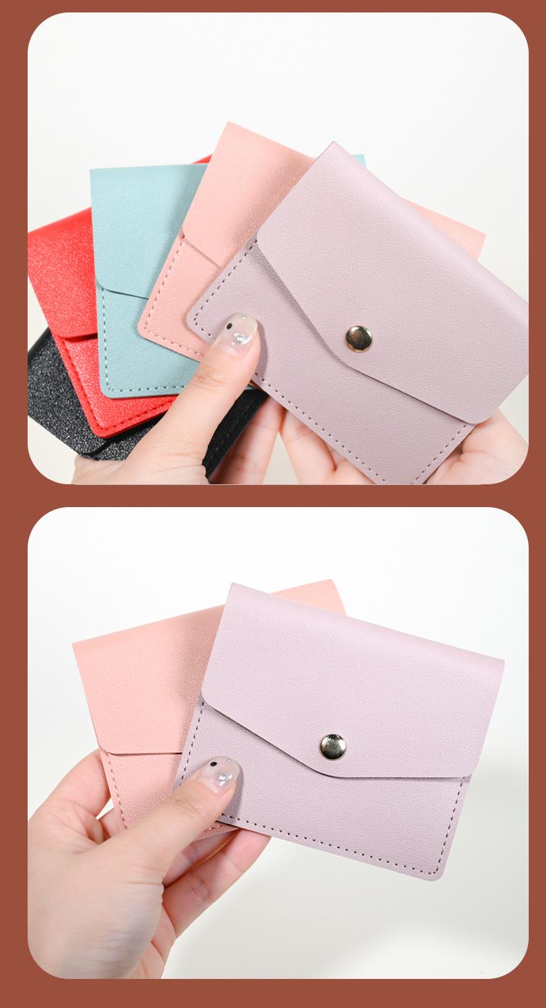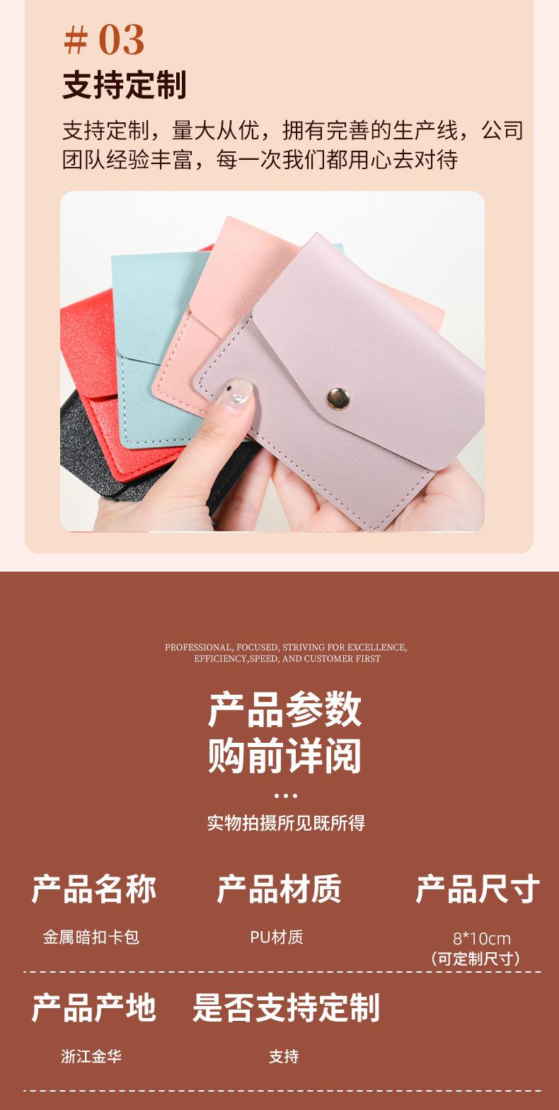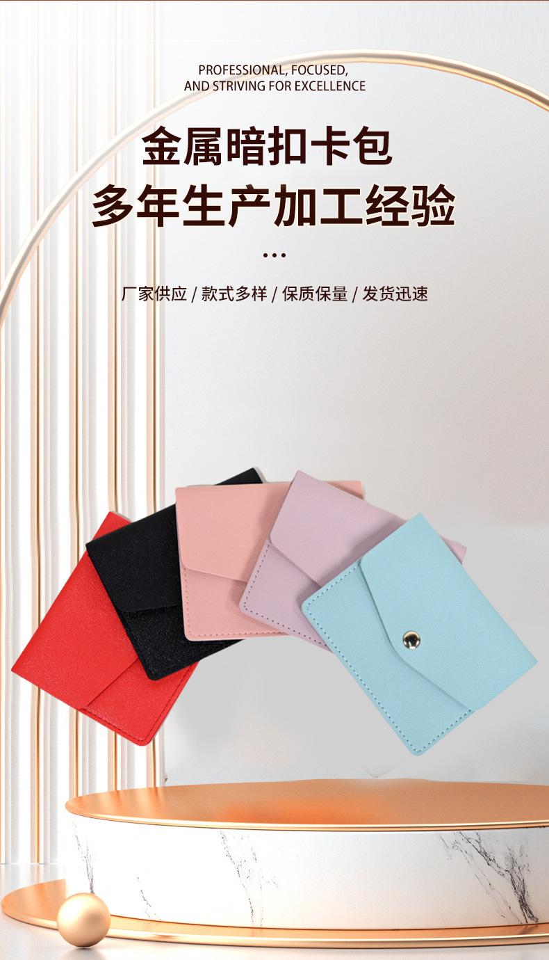 Procesamiento Personalizado de Fábrica Tarjetero de PU con Solapa y Botón Oculto Bolsa para Tarjetas de Cuero de Gran Capacidad Portatarjetas Portátil con Múltiples Ranuras para Tarjetas