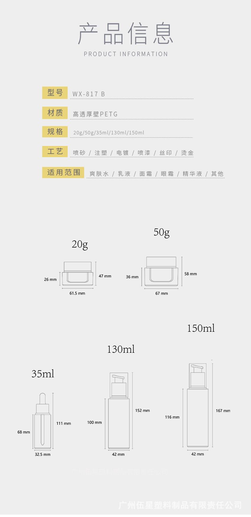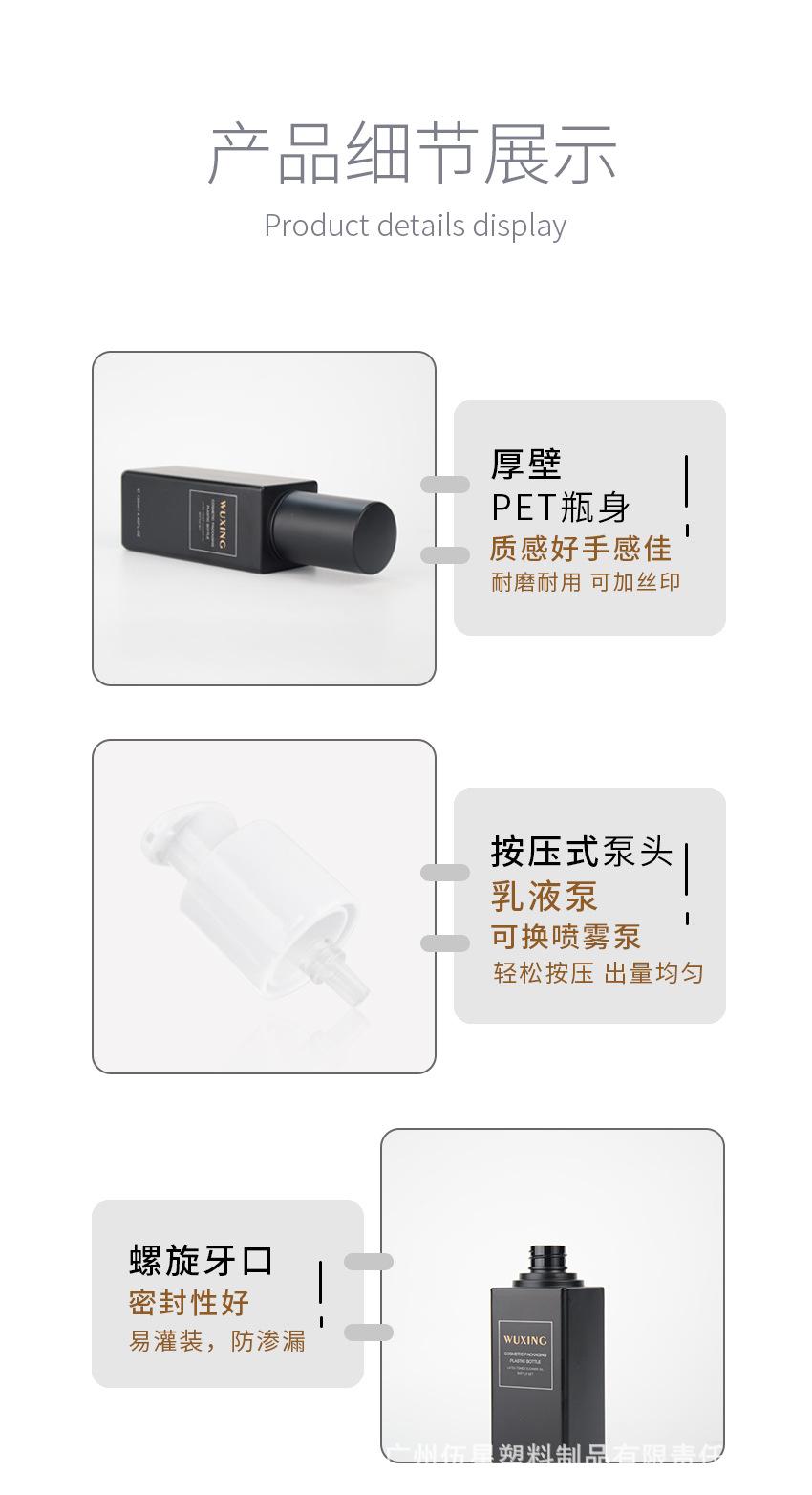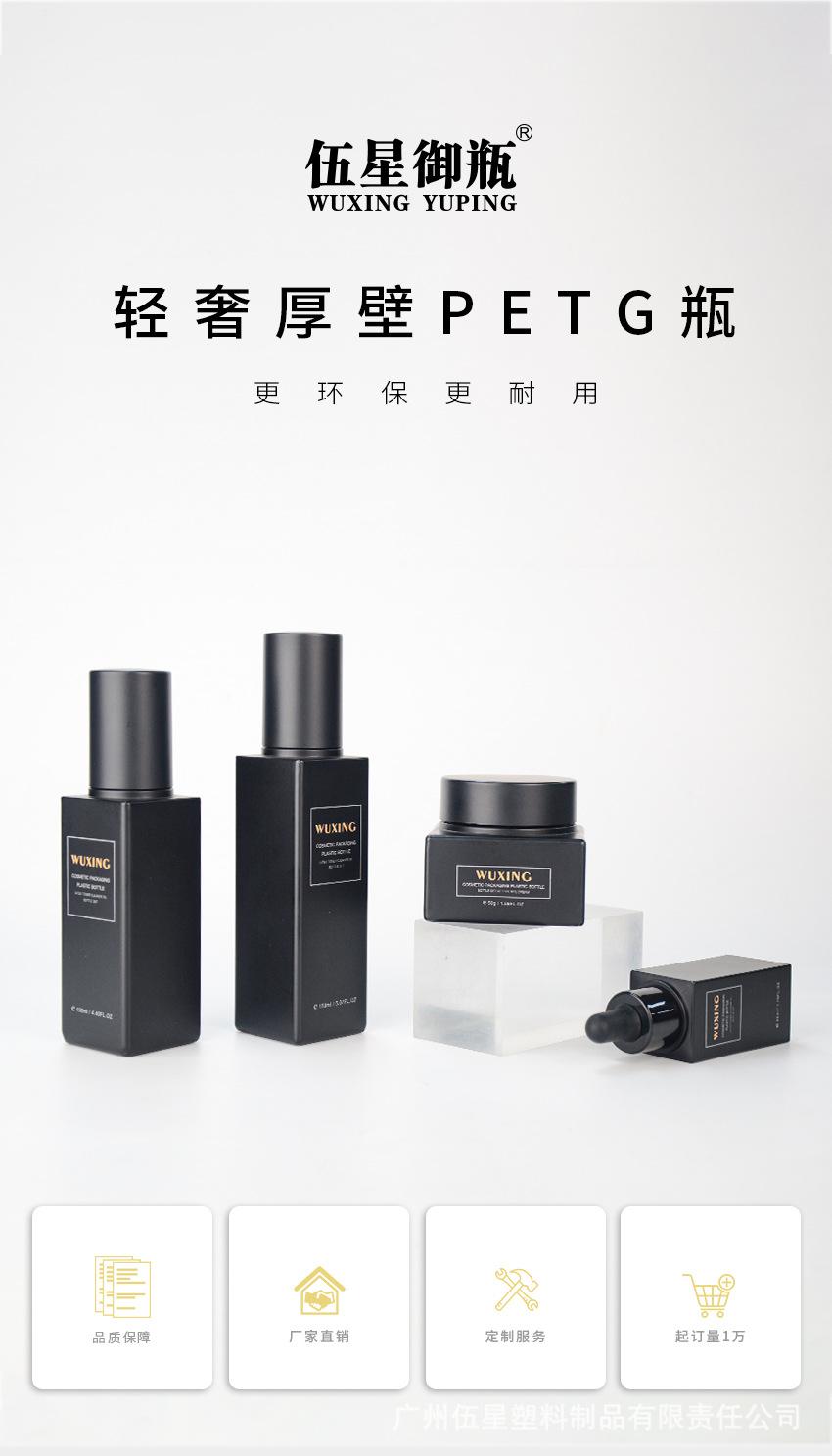 Envase Cosmético Cuadrado de Pared Gruesa de PETG Personalizado Prensa 130150 Ml Set Crema de Agua Botella de Esencia con Gotero
