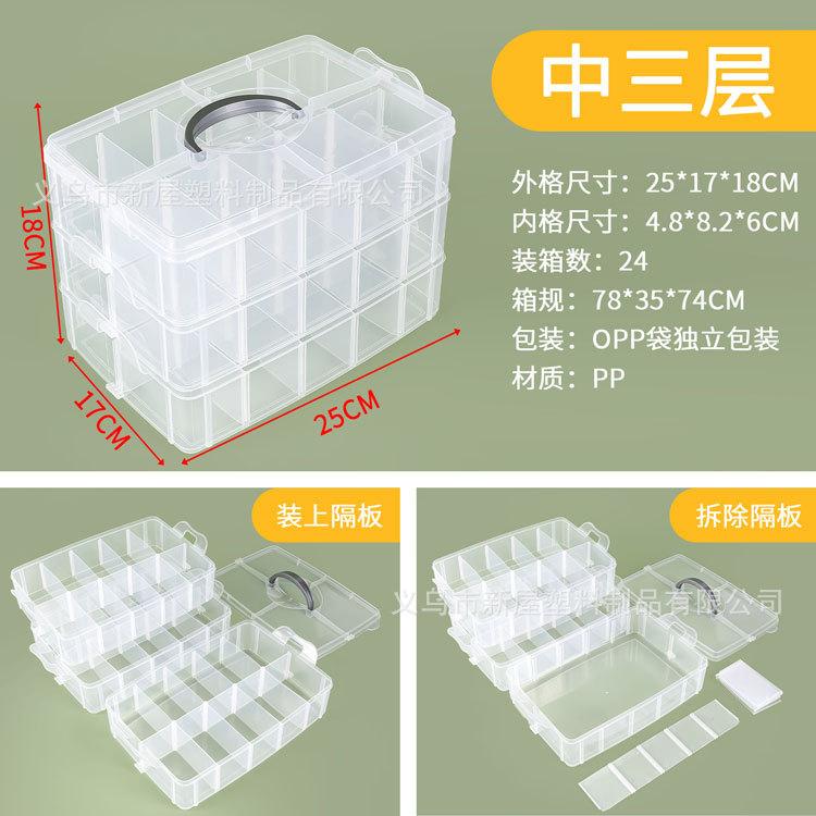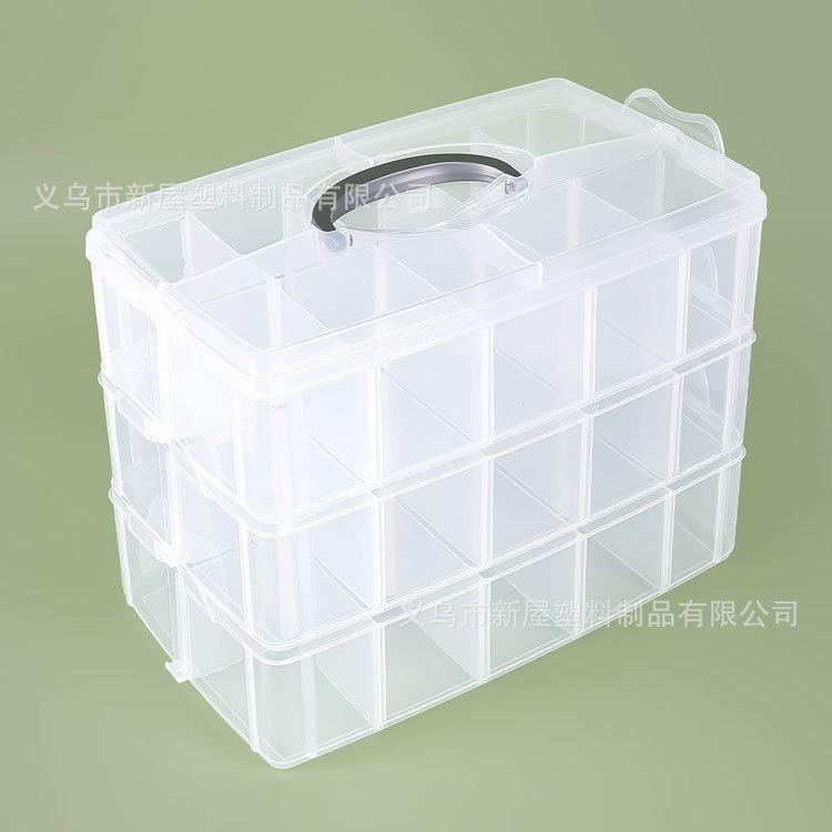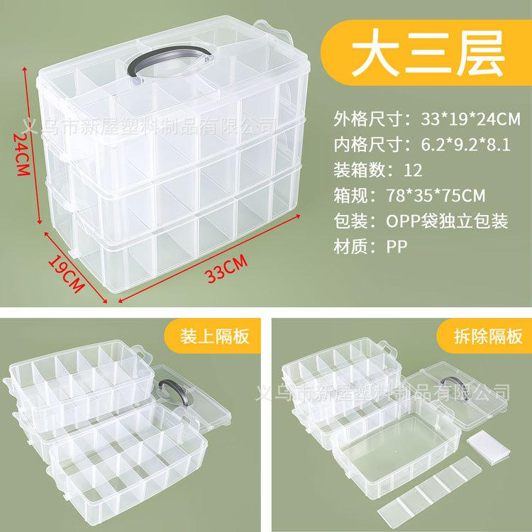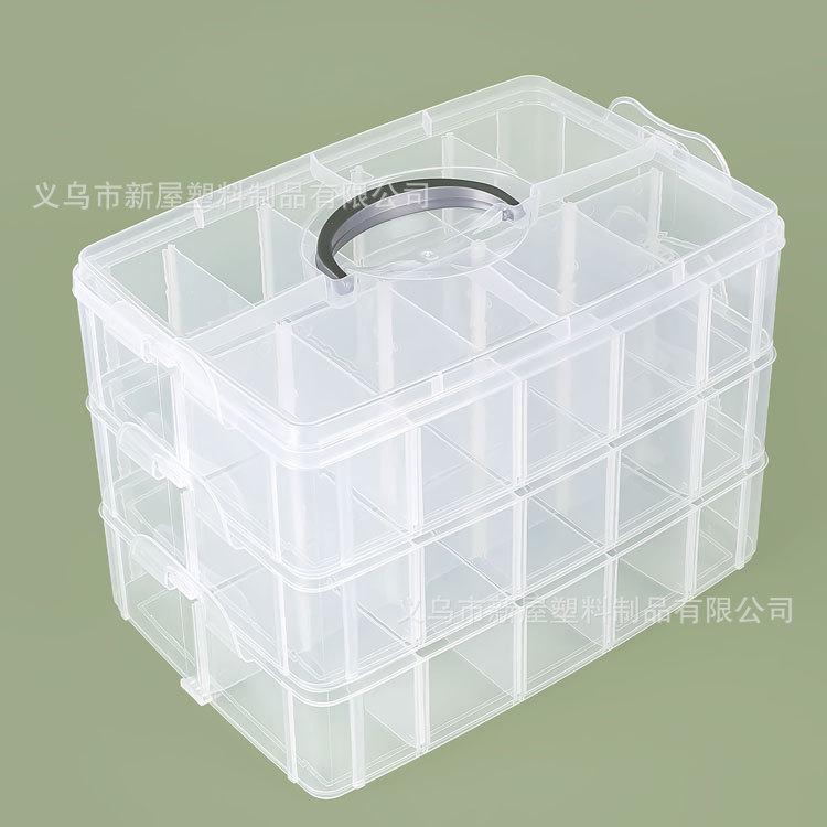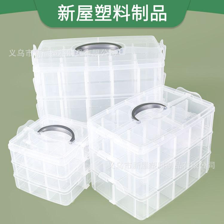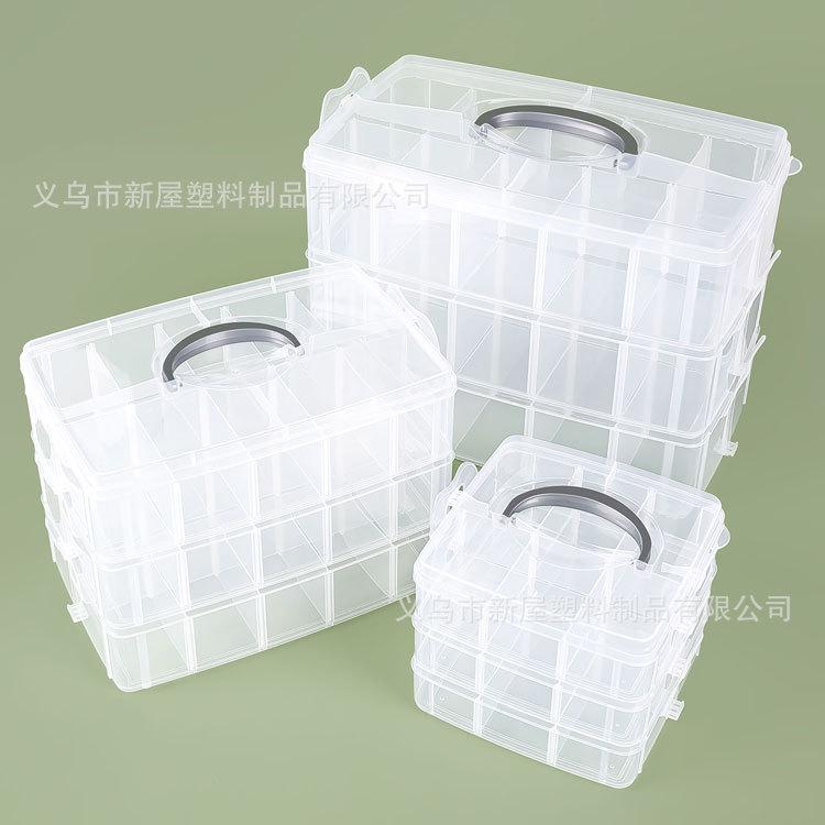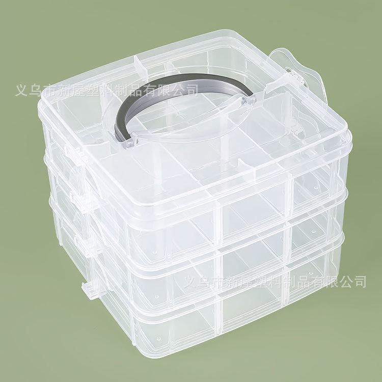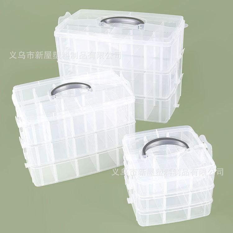 Caja de Plástico Portátil Grande Multifuncional Desmontable de Tres Capas Organizador de Maquillaje Joyero Organizador de Juguetes Calcetines Caja de Almacenamiento Transparente