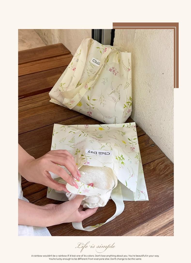 Beige floral long hand shoulder style; 32*32*10cm; 50 pieces