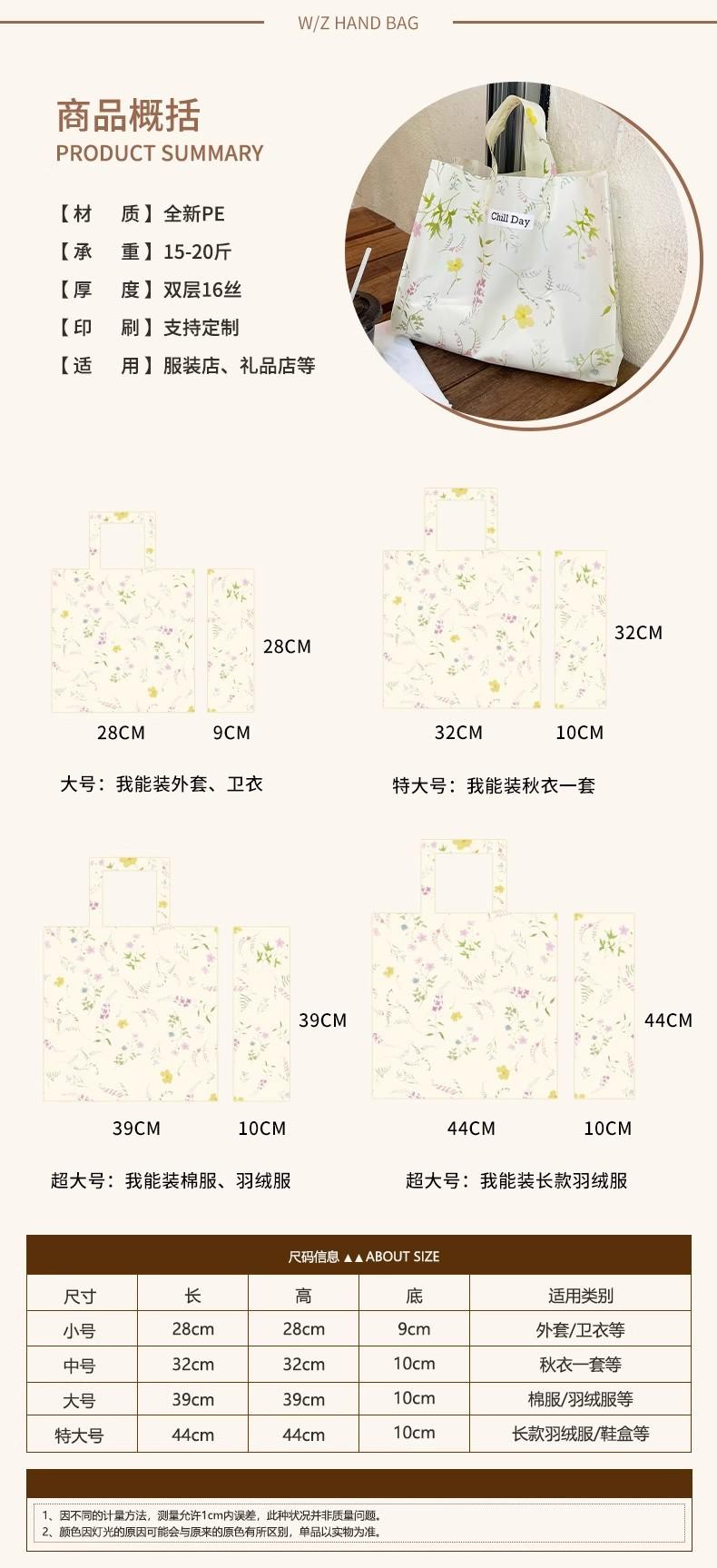 Beige floral long hand shoulder style; 39*39*10cm; 50 pieces