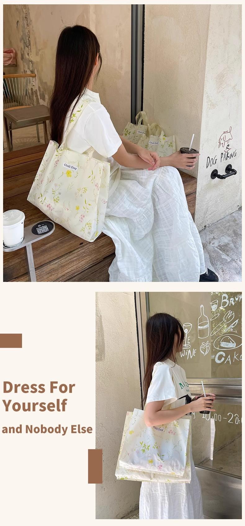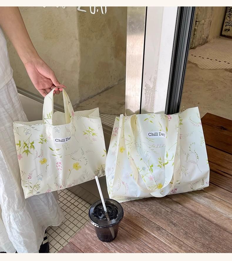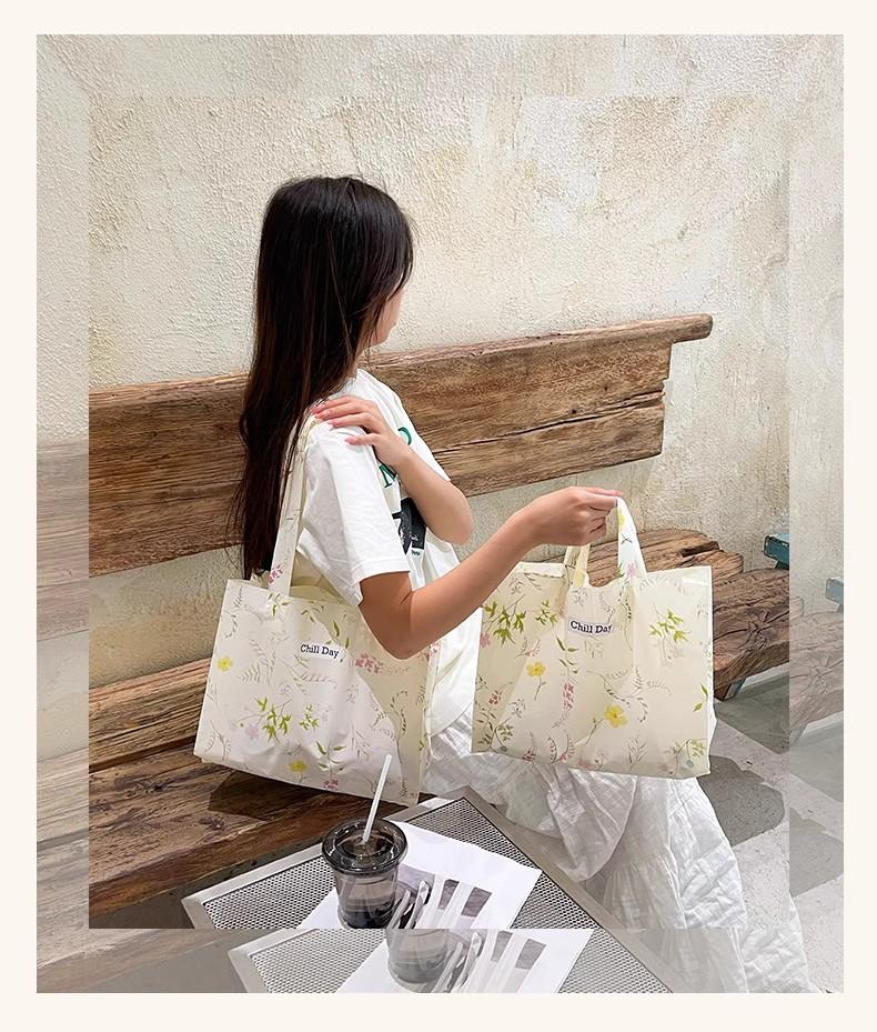 Beige floral long hand shoulder style; 44*44*10cm; 50 pieces