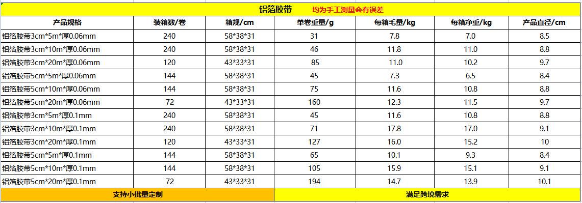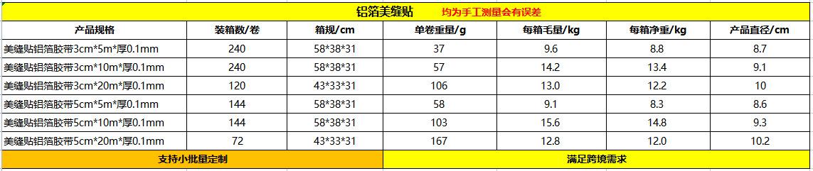 Aluminum foil tape; width 3cm * length 10m; thickness 0.06mm