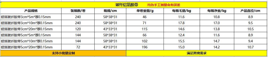 Aluminum foil tape; width 3cm * length 20m; thickness 0.06mm