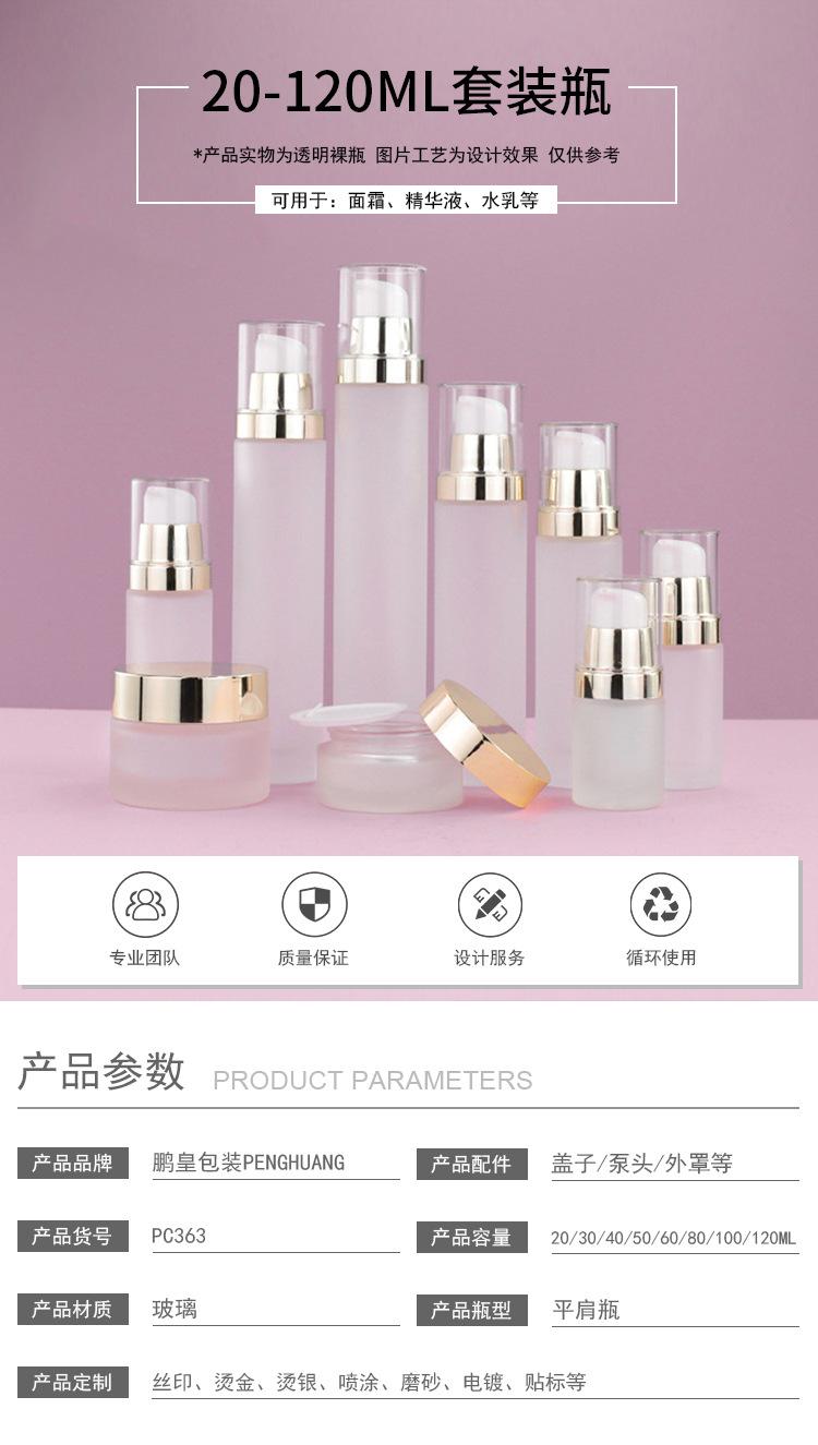 Set de Cosméticos de Vidrio Personalizado por el Fabricante Botella 20-120ml Botella de Loción Esencia 30g 50g Botella de Crema Facial