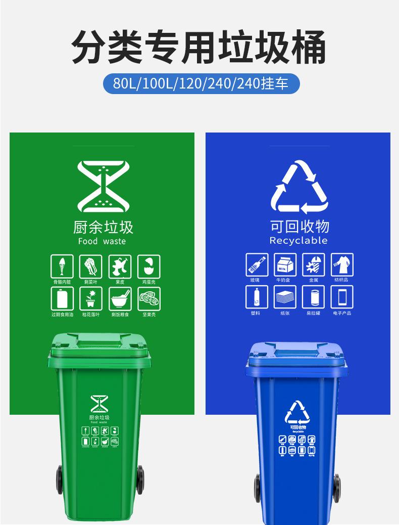 Bote de Basura para Exterior grande comercial engrosado clasificación de saneamiento de propiedad residencial cubo con tapa 240L L gran capacidad cocina