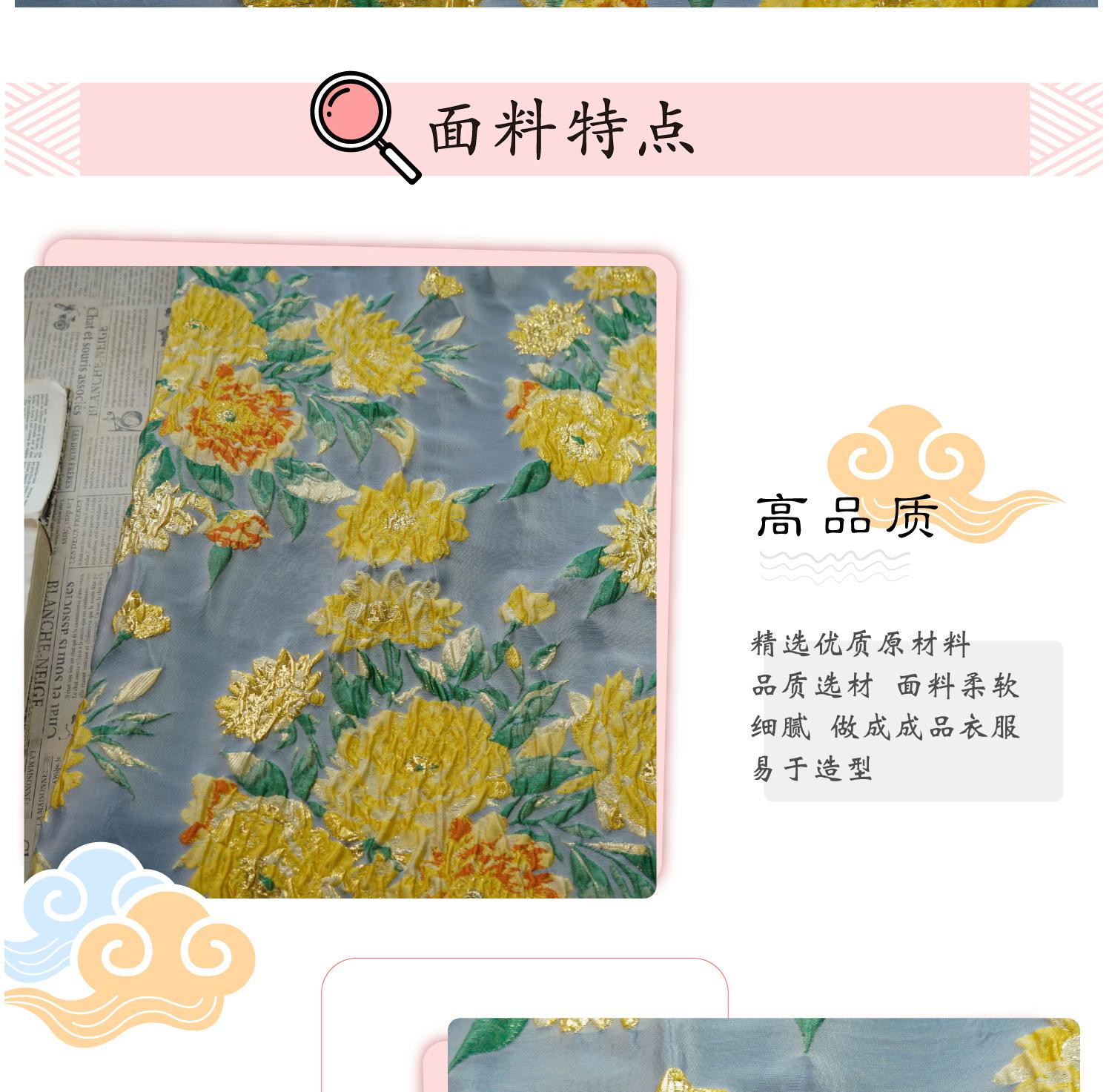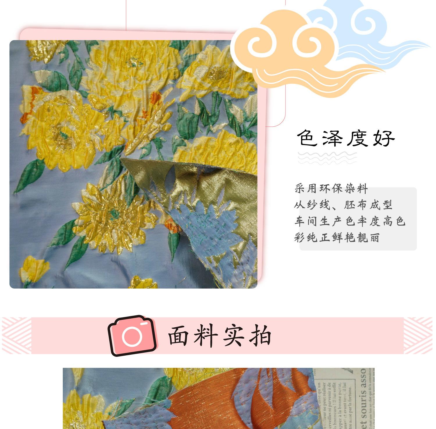 Compra Nuevo tejido jacquard de estilo chino con estampado de flores doradas en relieve, ideal para primavera y verano, para vestidos, chalecos y bolsos de mujer. al por mayor en Joom.pro