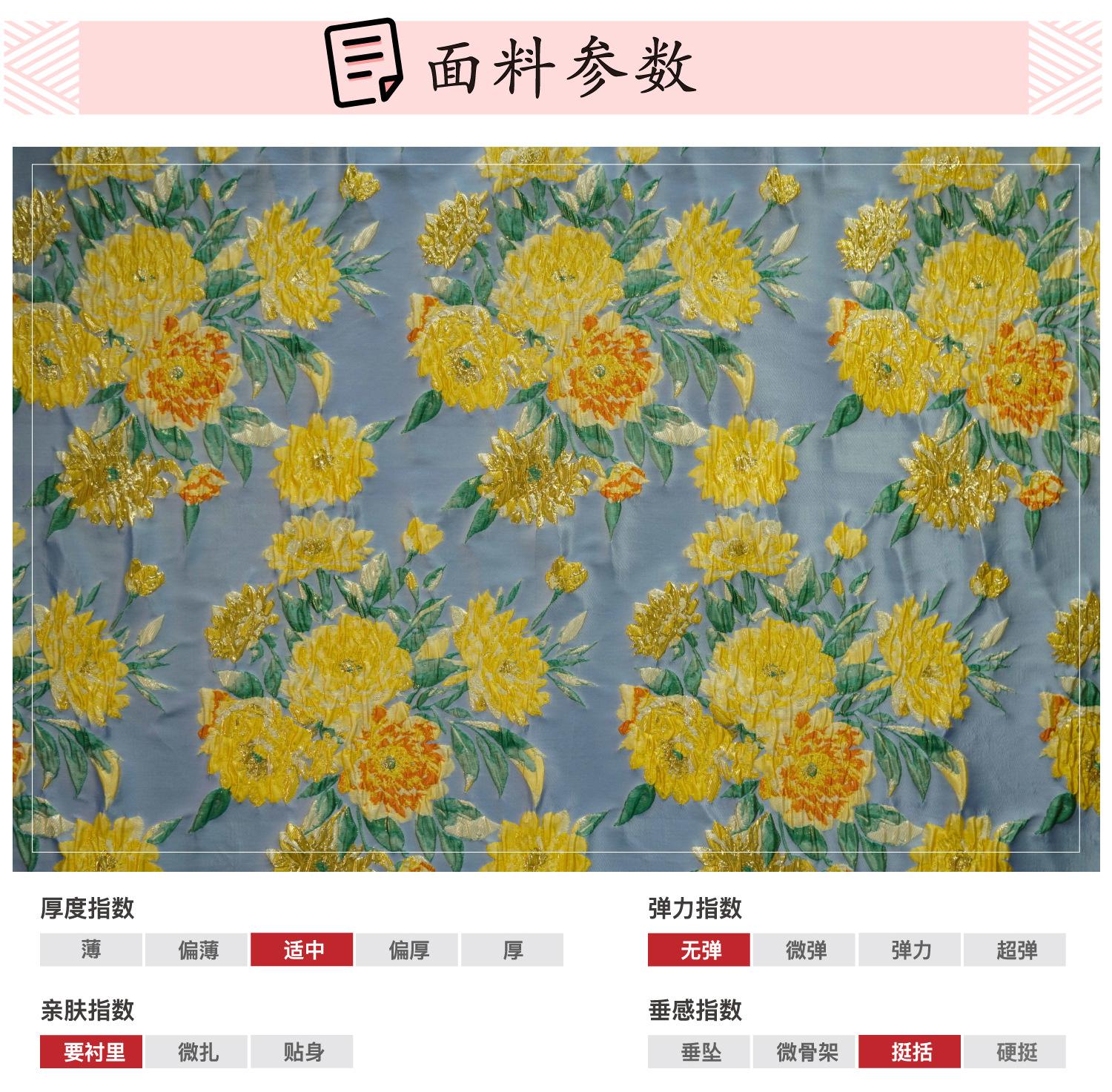 Nuevo tejido jacquard de estilo chino con estampado de flores doradas en relieve, ideal para primavera y verano, para vestidos, chalecos y bolsos de mujer.
