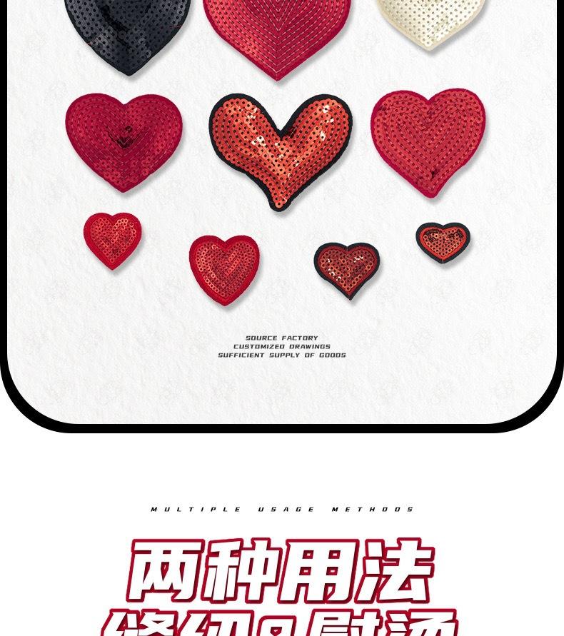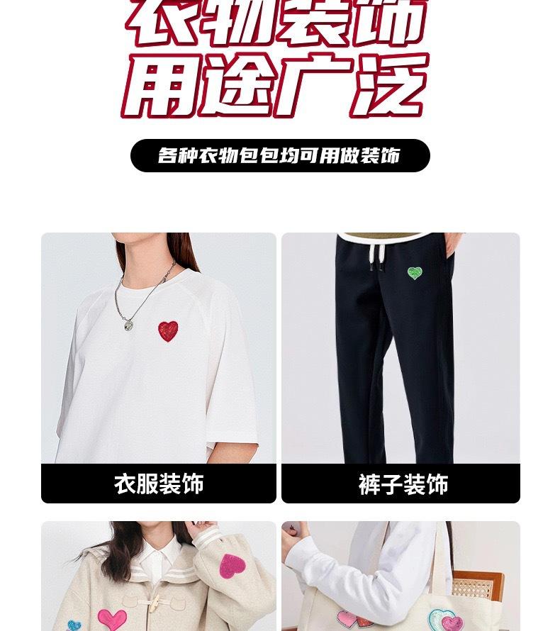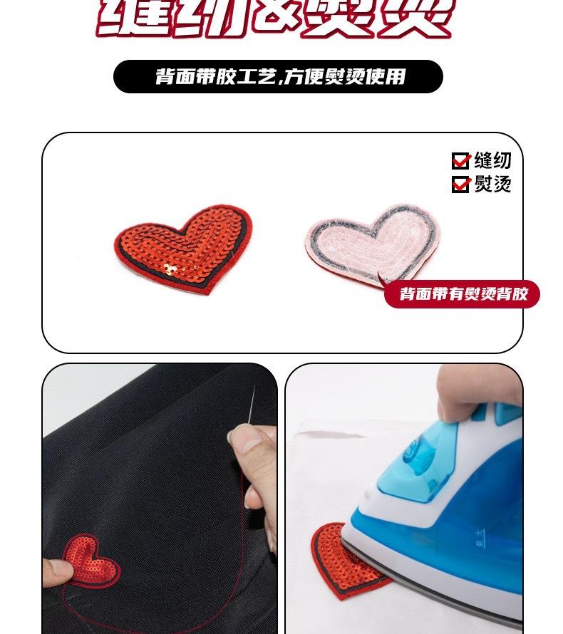 Parche Bordado de Lentejuelas en Forma de Corazón para Ropa y Bolsos, para Planchar, Sin Coser