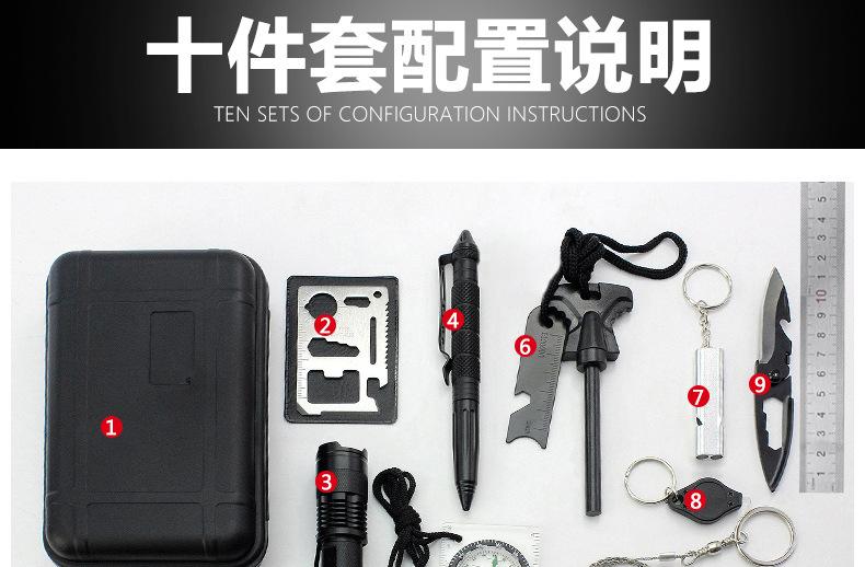 Juego Combinado de Equipo de Supervivencia en Campo Herramienta Multifuncional de Primeros Auxilios Caja del Tesoro Aventura al Aire Libre Viaje Vehículo Caja de Supervivencia