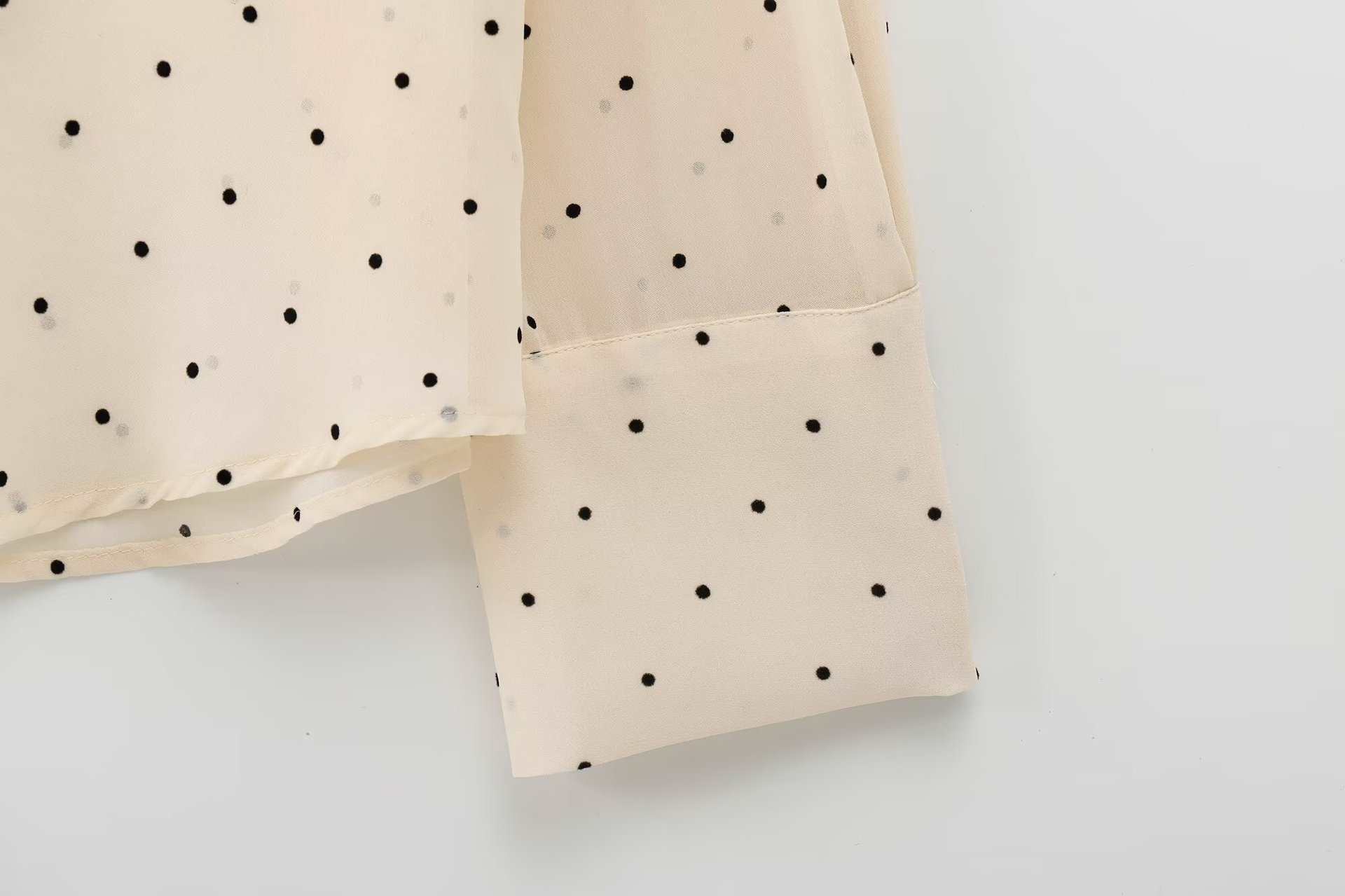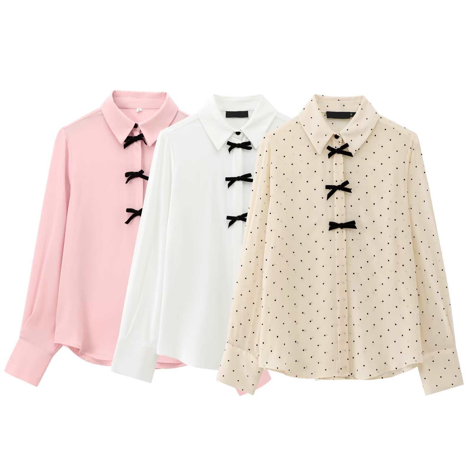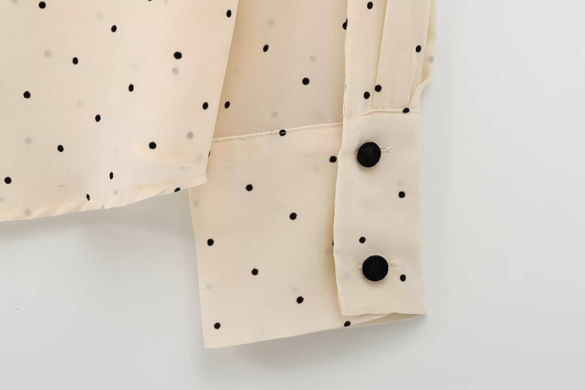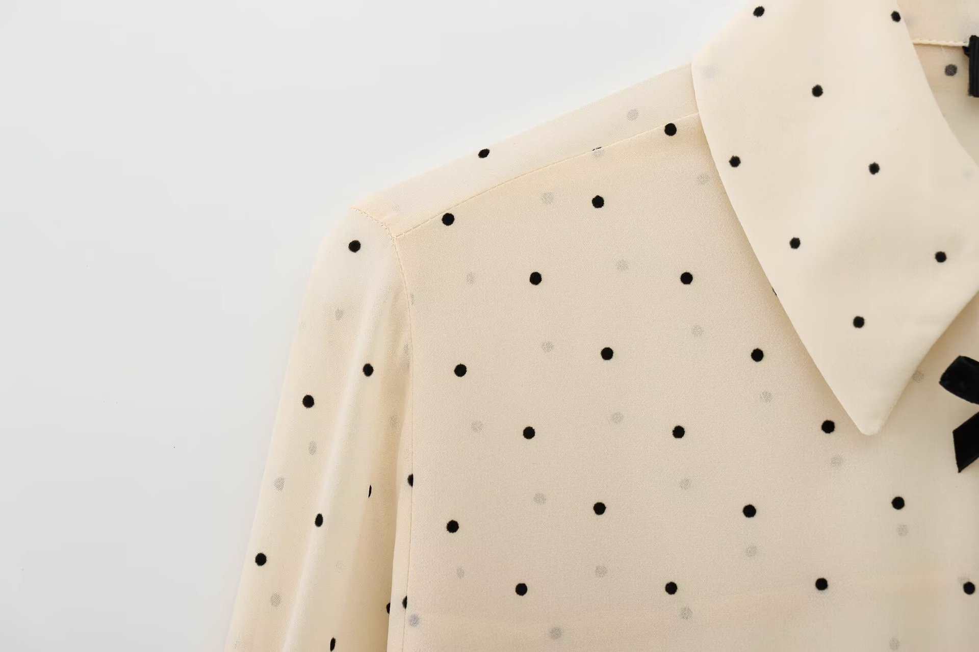 Camisas de Terciopelo Transfronterizas Europeas y Americanas con Estilo de Lazo y Lunares para Otoño de Mujer Ropa de Mujer de Comercio Exterior