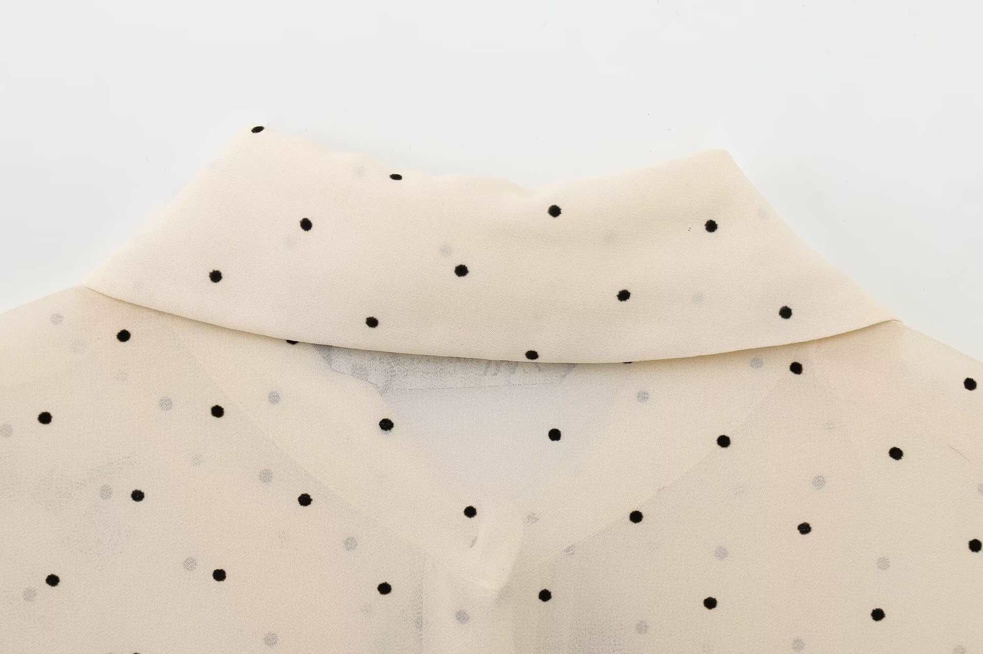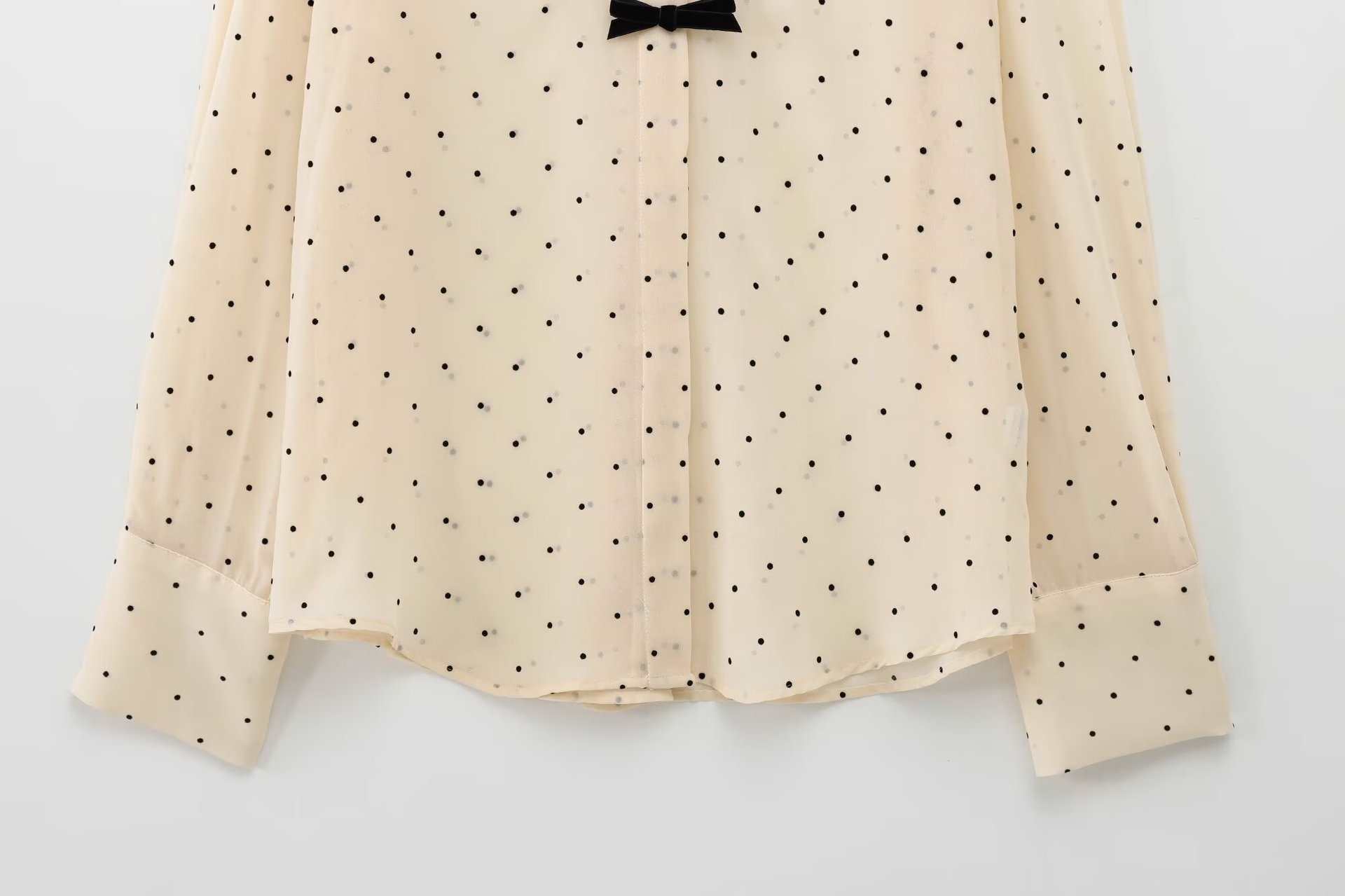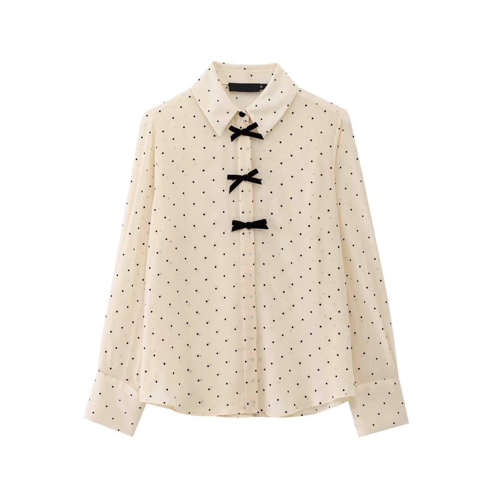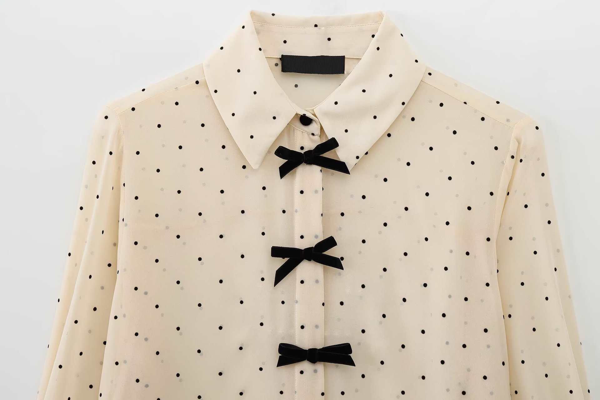 Camisas de Terciopelo Transfronterizas Europeas y Americanas con Estilo de Lazo y Lunares para Otoño de Mujer Ropa de Mujer de Comercio Exterior