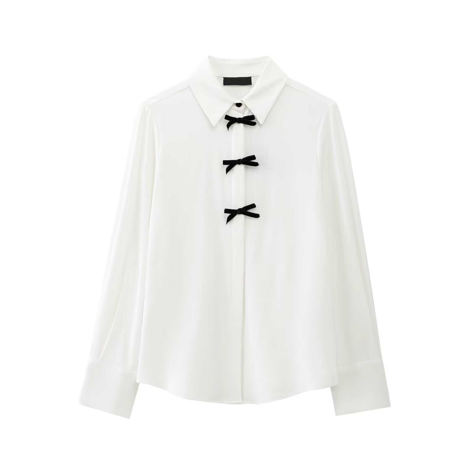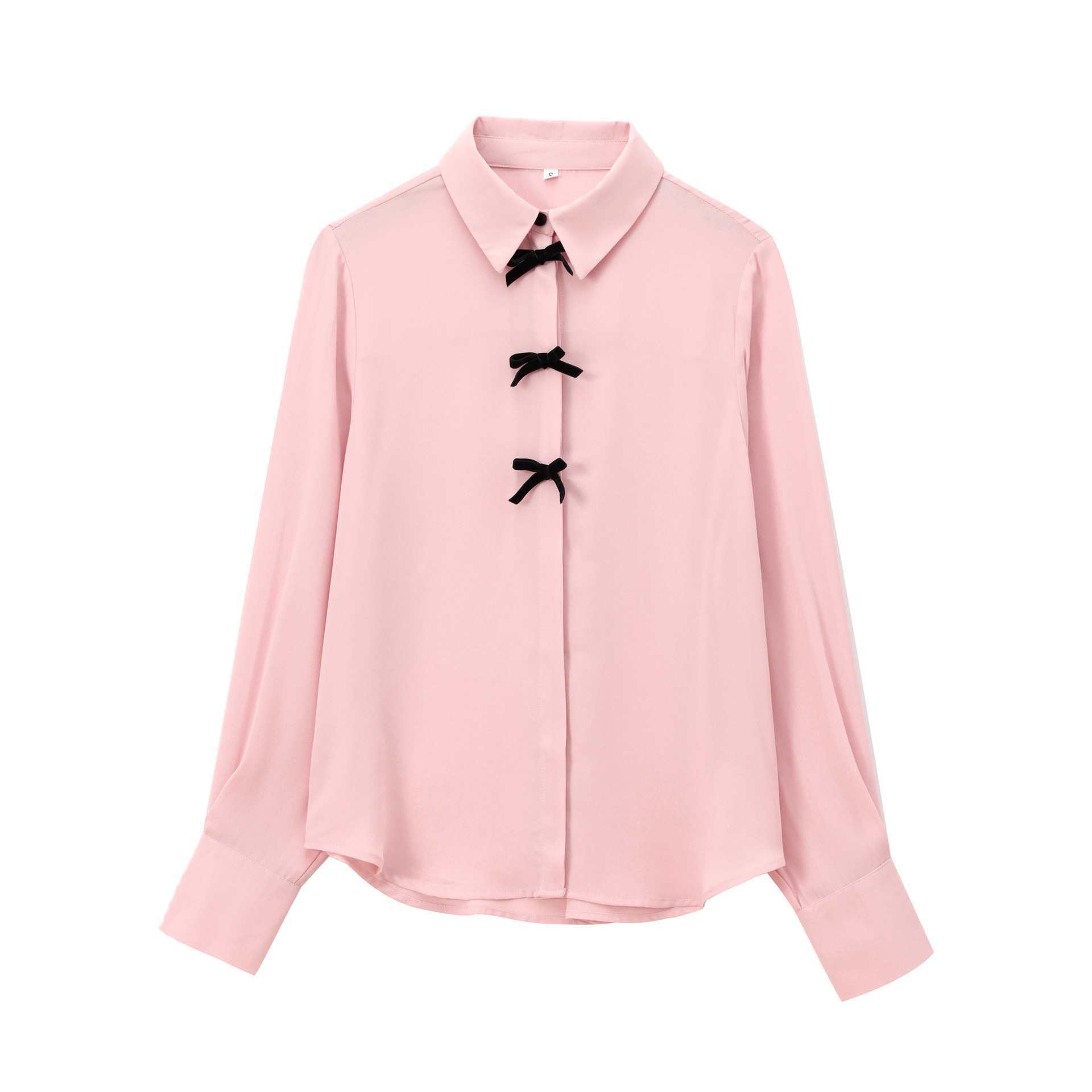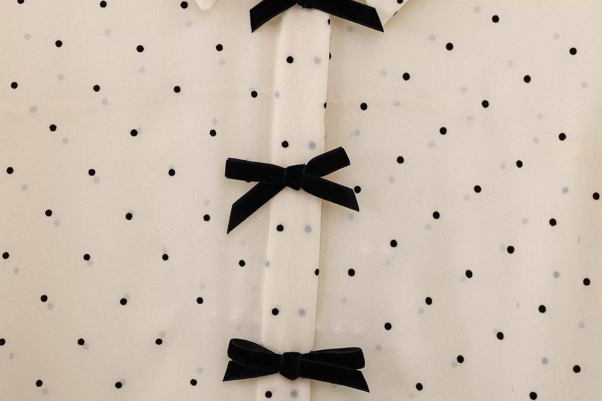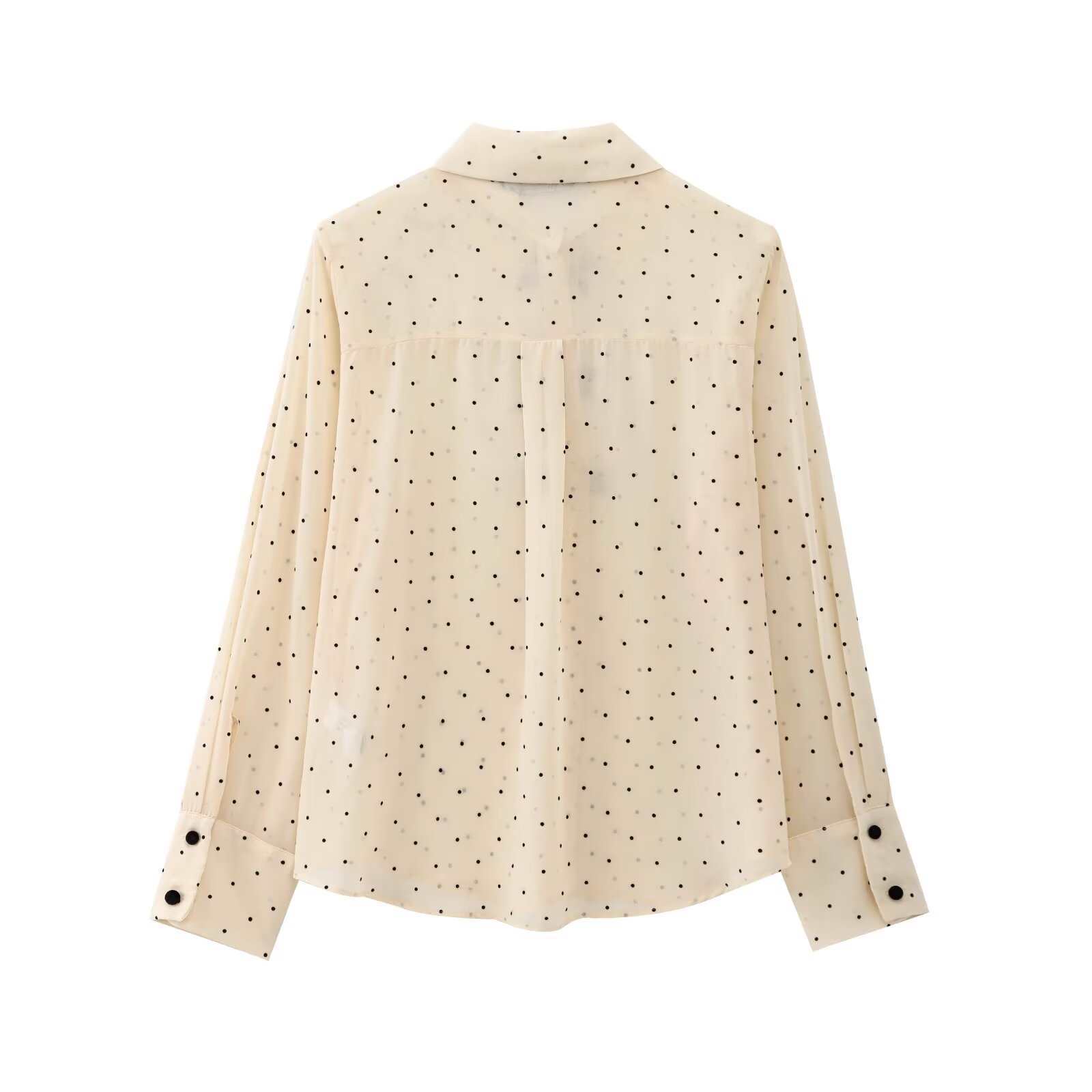 Camisas de Terciopelo Transfronterizas Europeas y Americanas con Estilo de Lazo y Lunares para Otoño de Mujer Ropa de Mujer de Comercio Exterior
