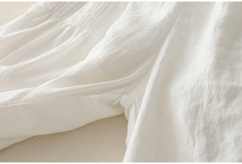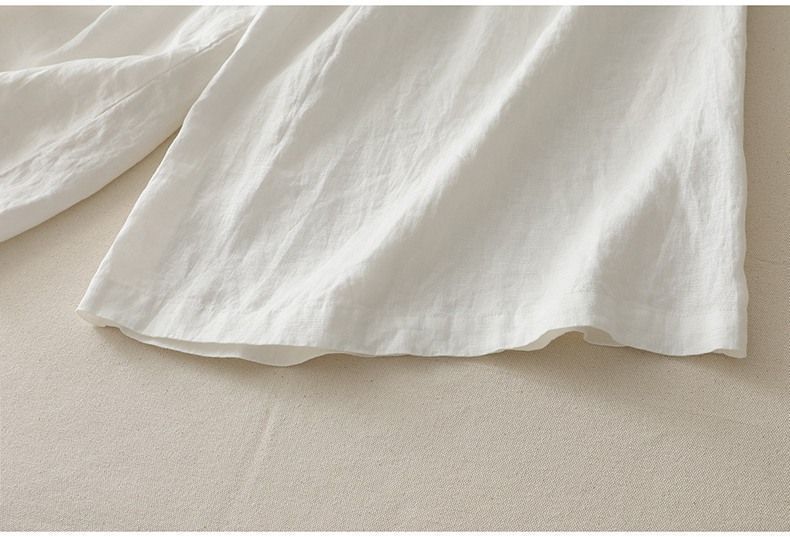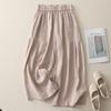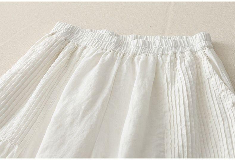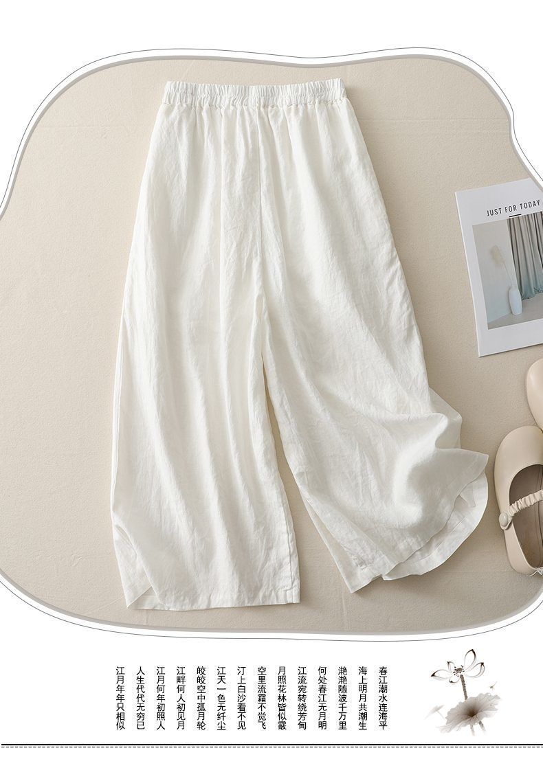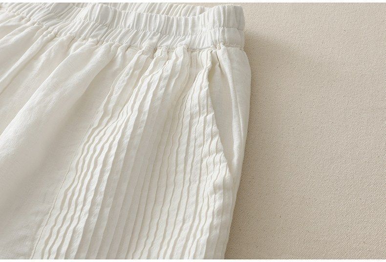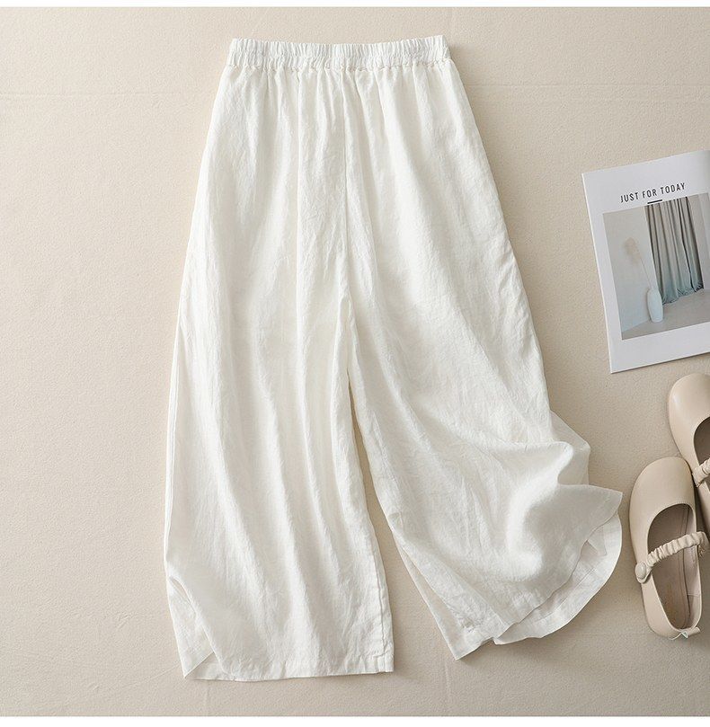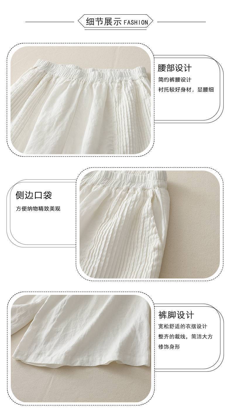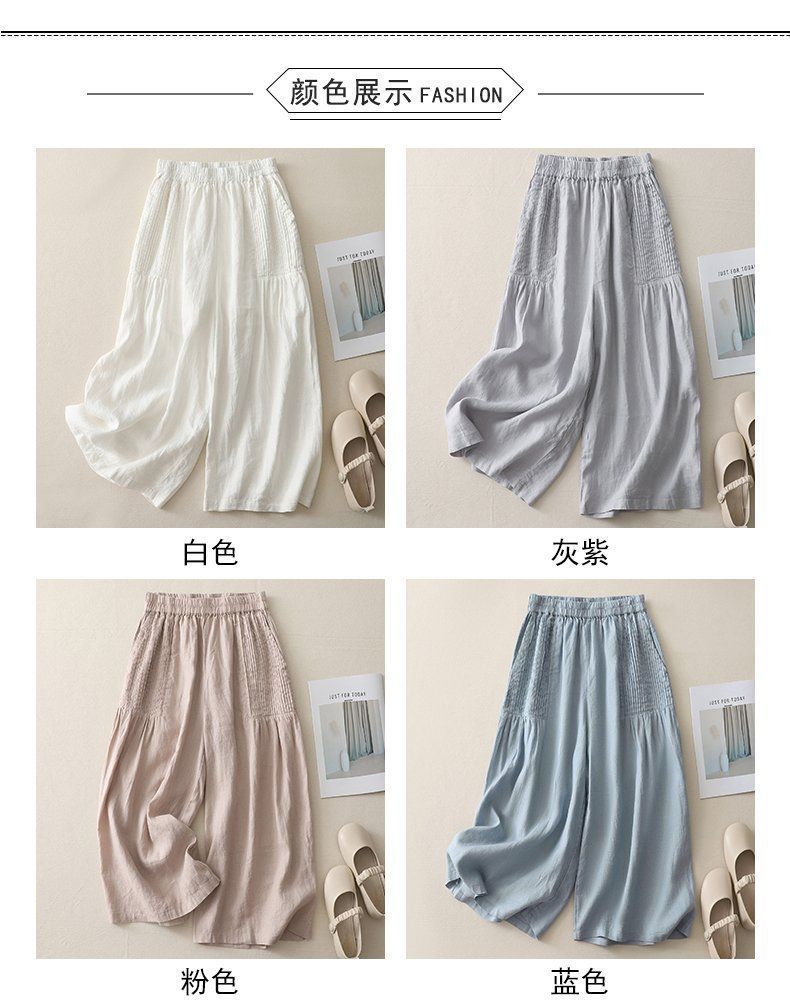 Tienda de Descuento Pantalones Falda Retro Plisados de Algodón y Lino de Pierna Ancha para Mujer Verano Literario Simple Color Sólido Cintura Alta Rectos
