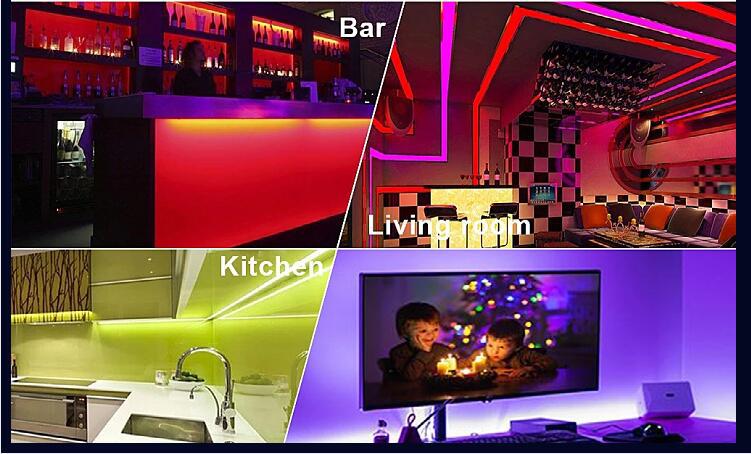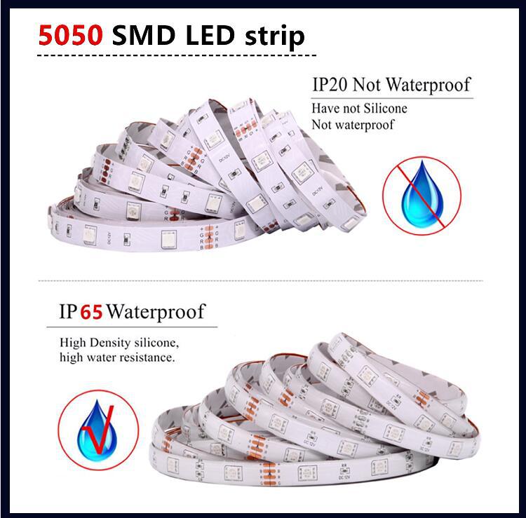 Tira de luces LED para interior y exterior, iluminación decorativa, tira de luces flexible RGB colorida / chip 5050 tira de luces de 12V