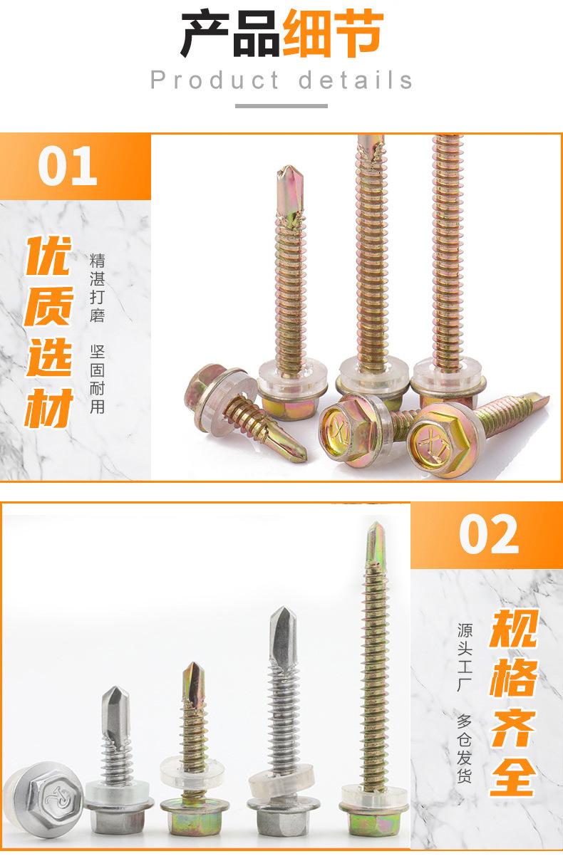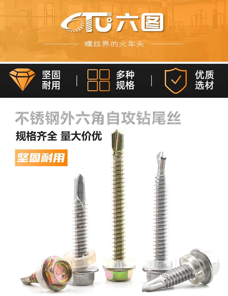 Tornillo de cola de milano para taladro de azulejo de acero inoxidable 304/410, con punta hexagonal externa, autoperforante, de color M6.3