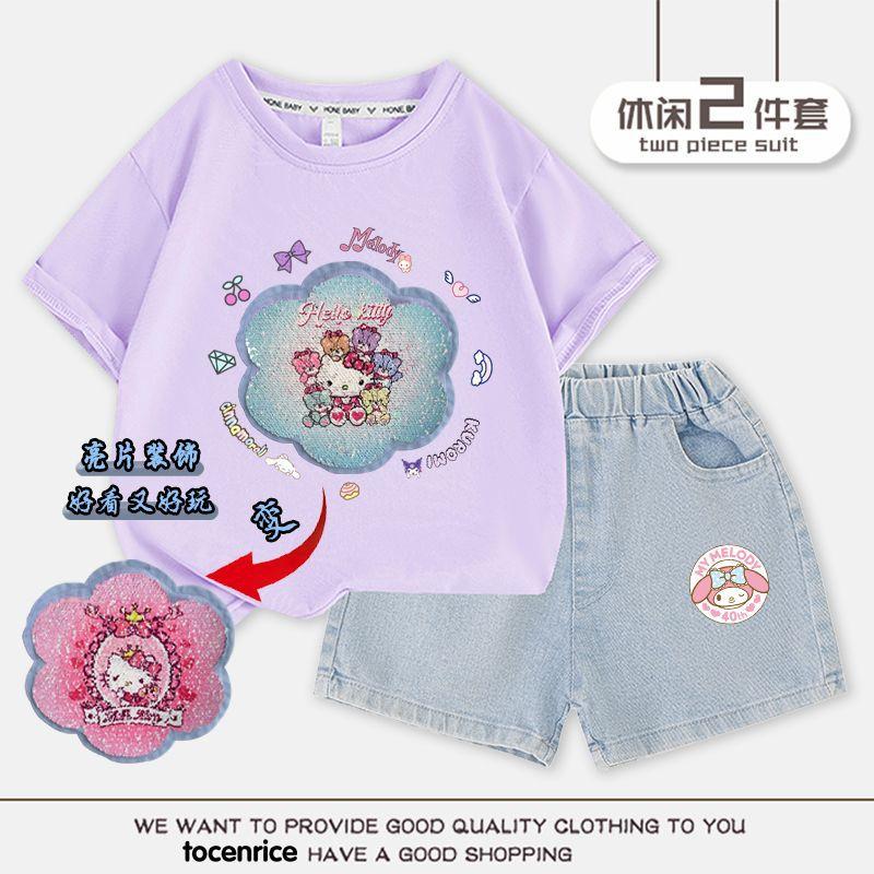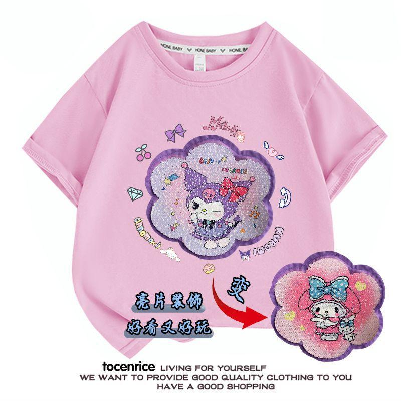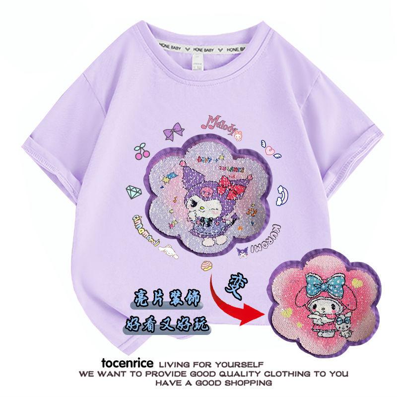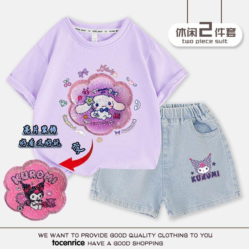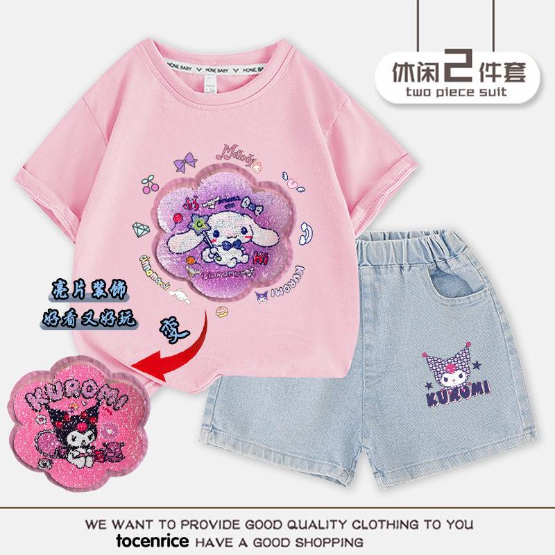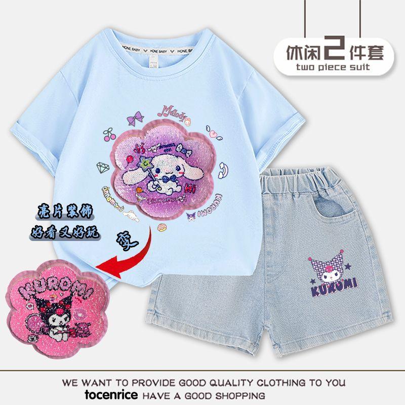 Conjunto de Camiseta de Algodón de Manga Corta para Niña con Lentejuelas Cambiantes de Color y Shorts Nuevo Estilo Ropa Elegante Merlot para Niña