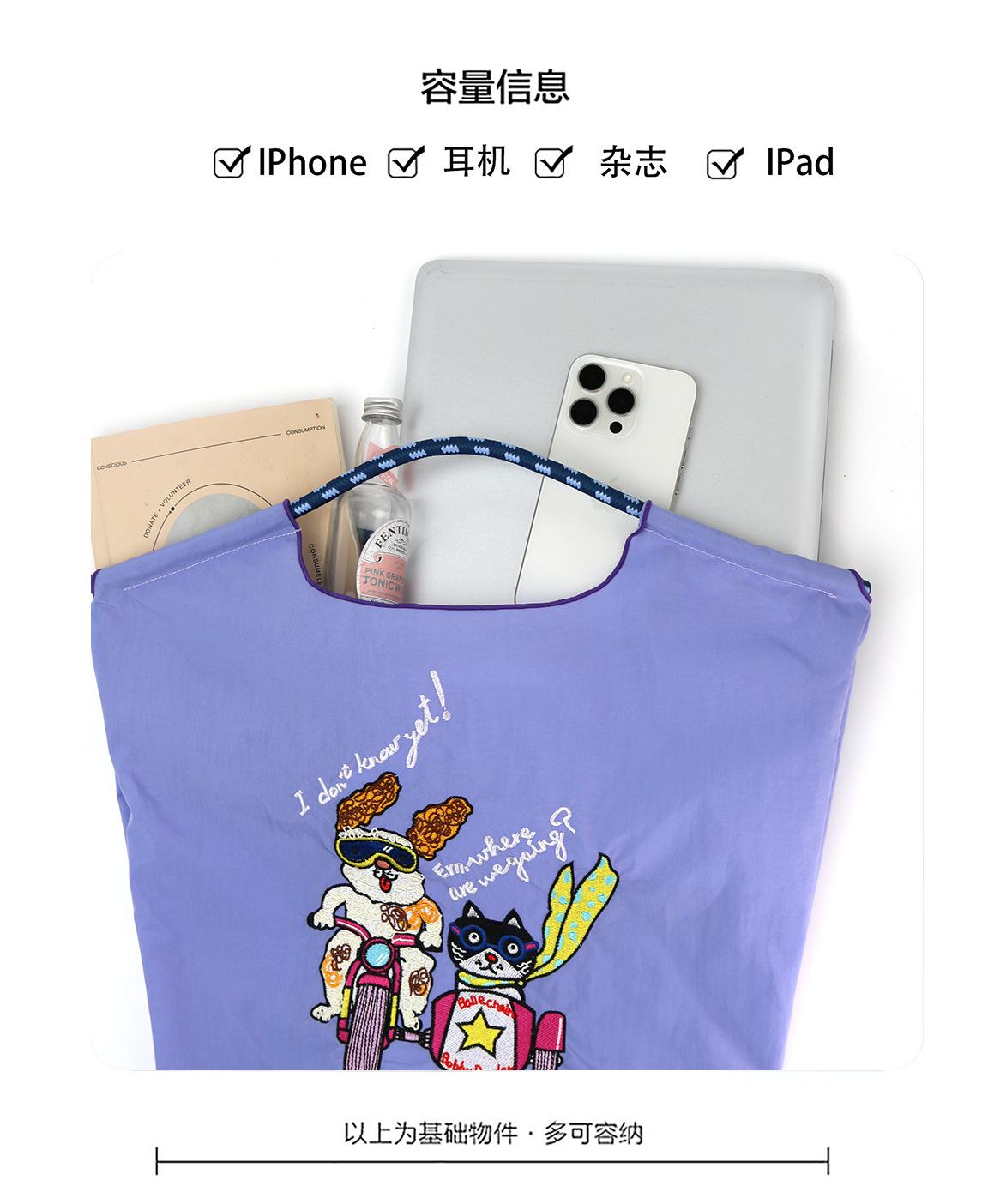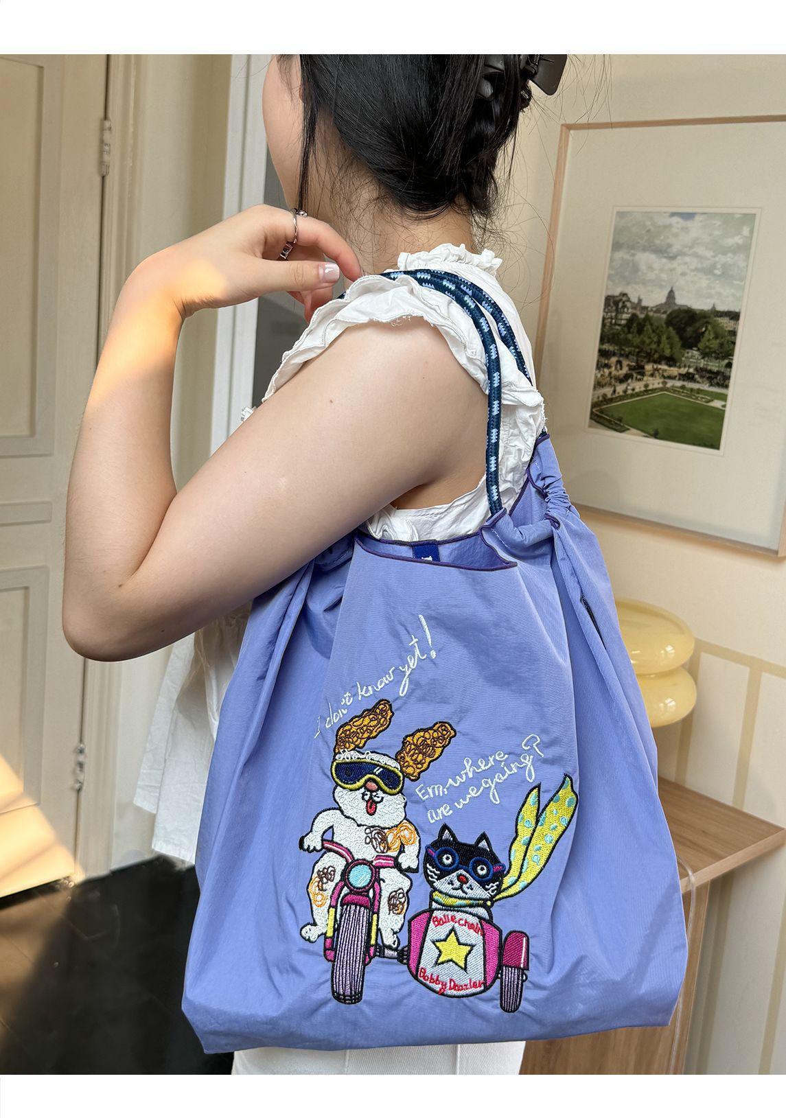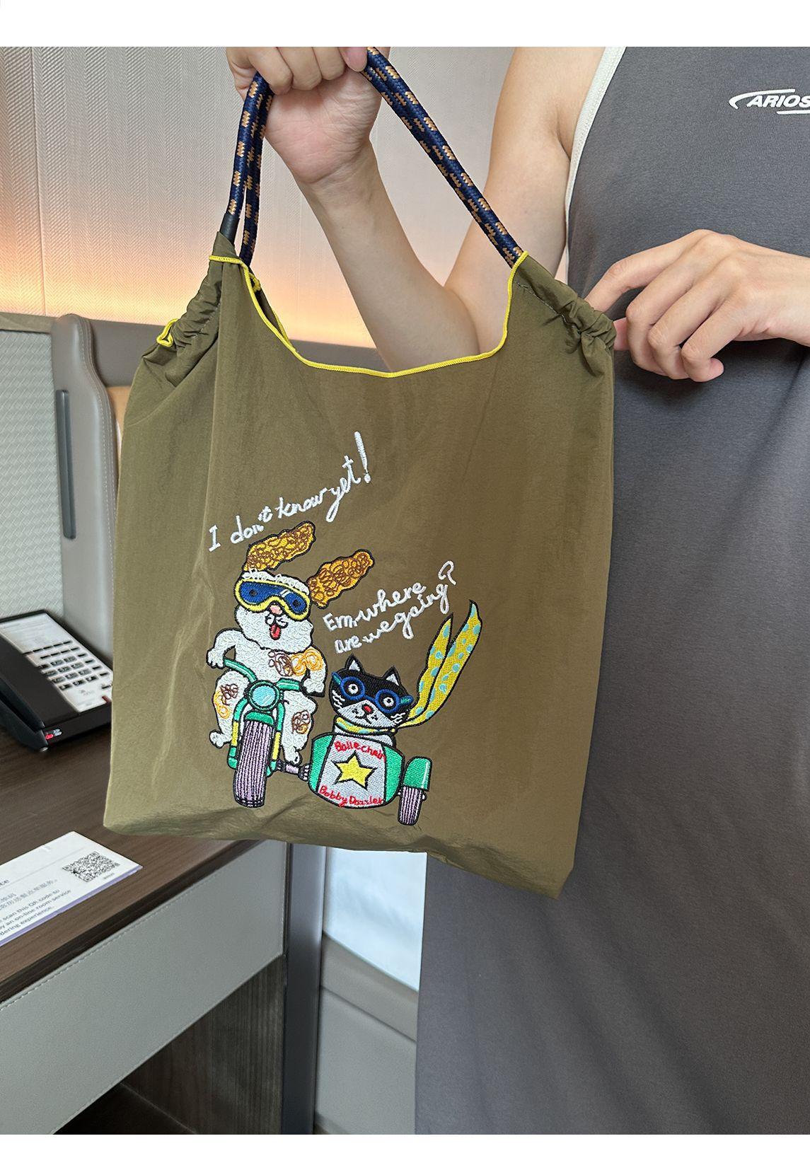Bolso de hombro portátil para mujer, bolso bordado, bandolera de nailon de gran capacidad, bolso de mano de nailon portátil y plegable.