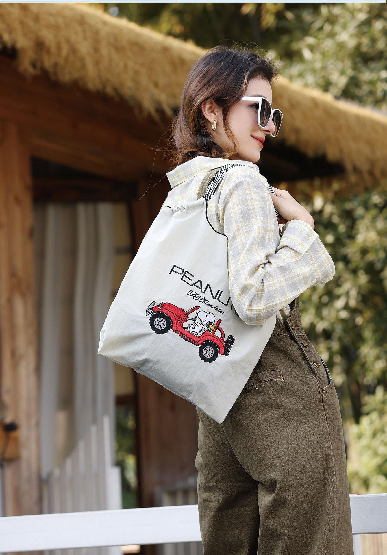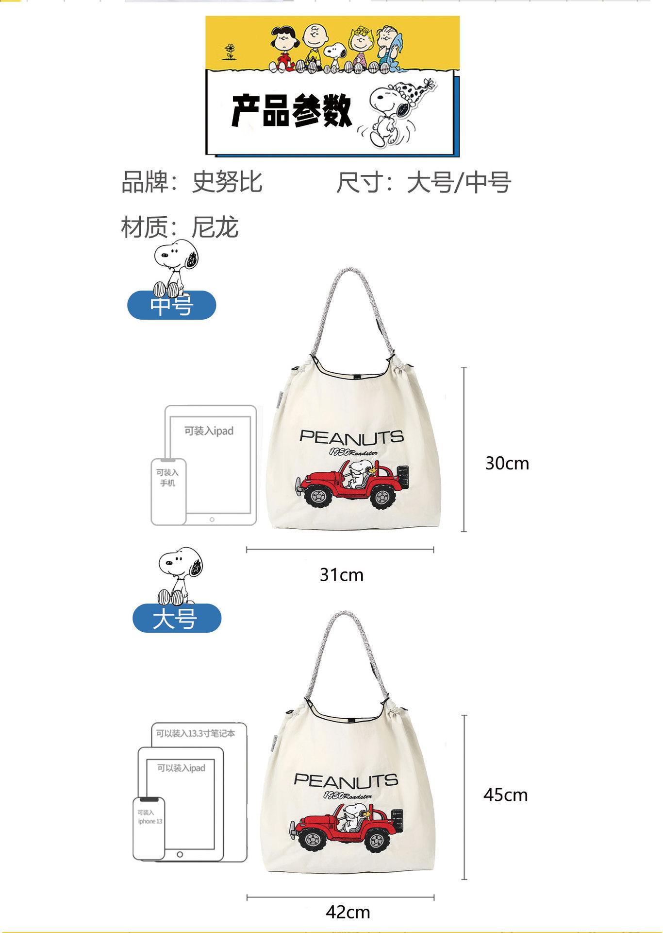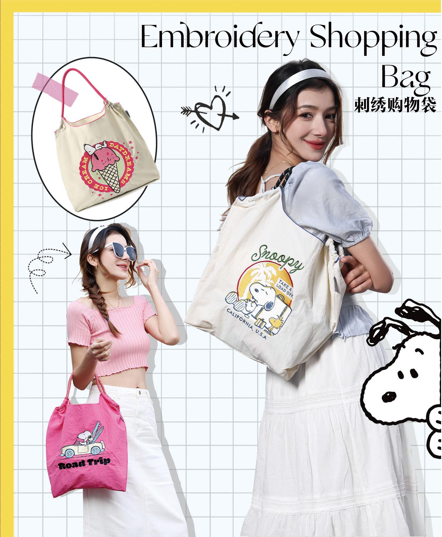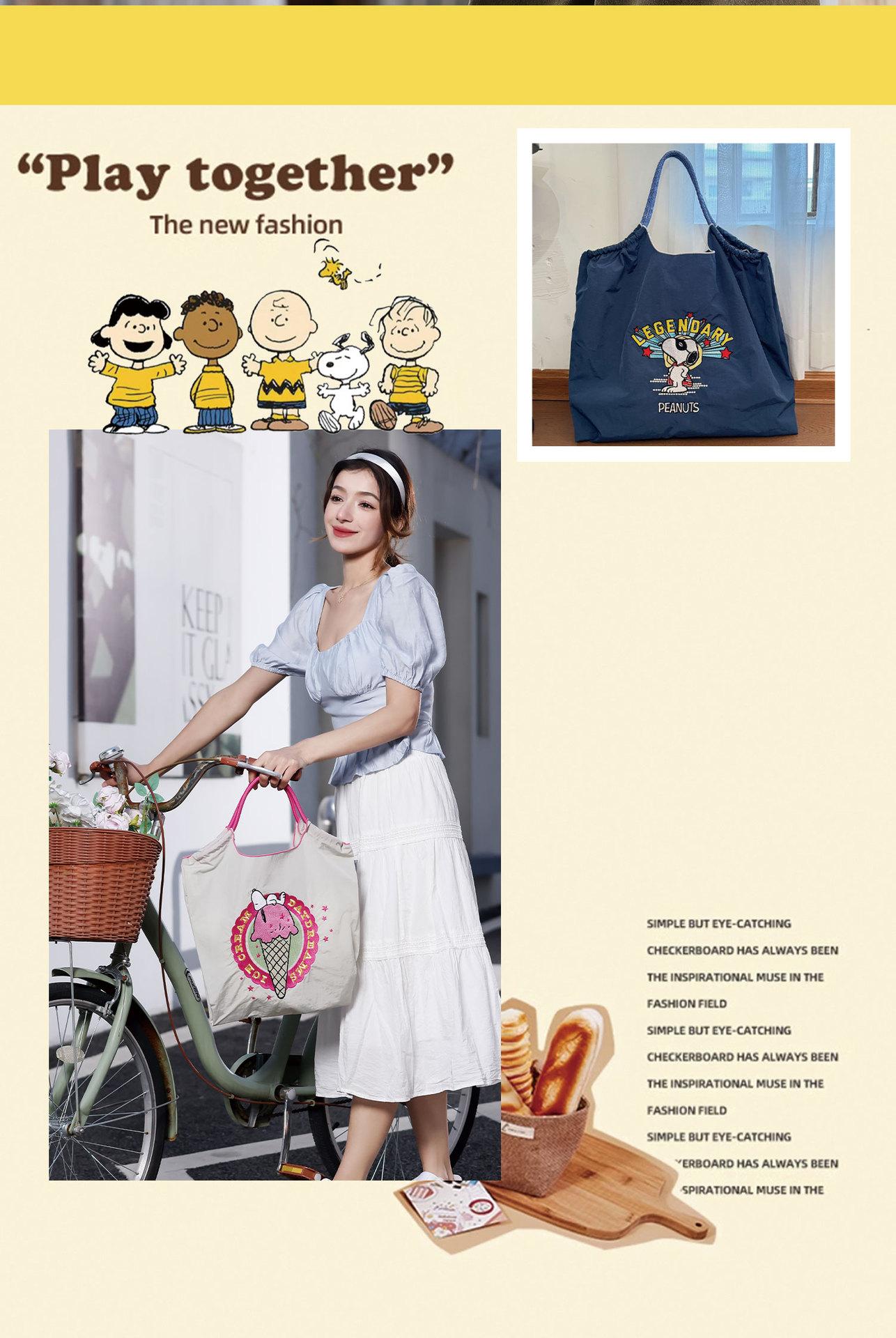 Bolso Articulado Snoopy Gran Capacidad Bolso Tote de Verano Bolso de Mujer Bolso de Hombro Mochila Portátil Bolso de Nailon Bordado para Mujer