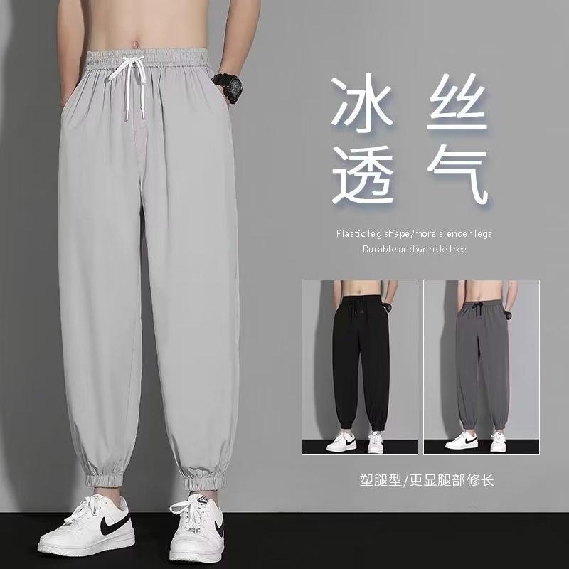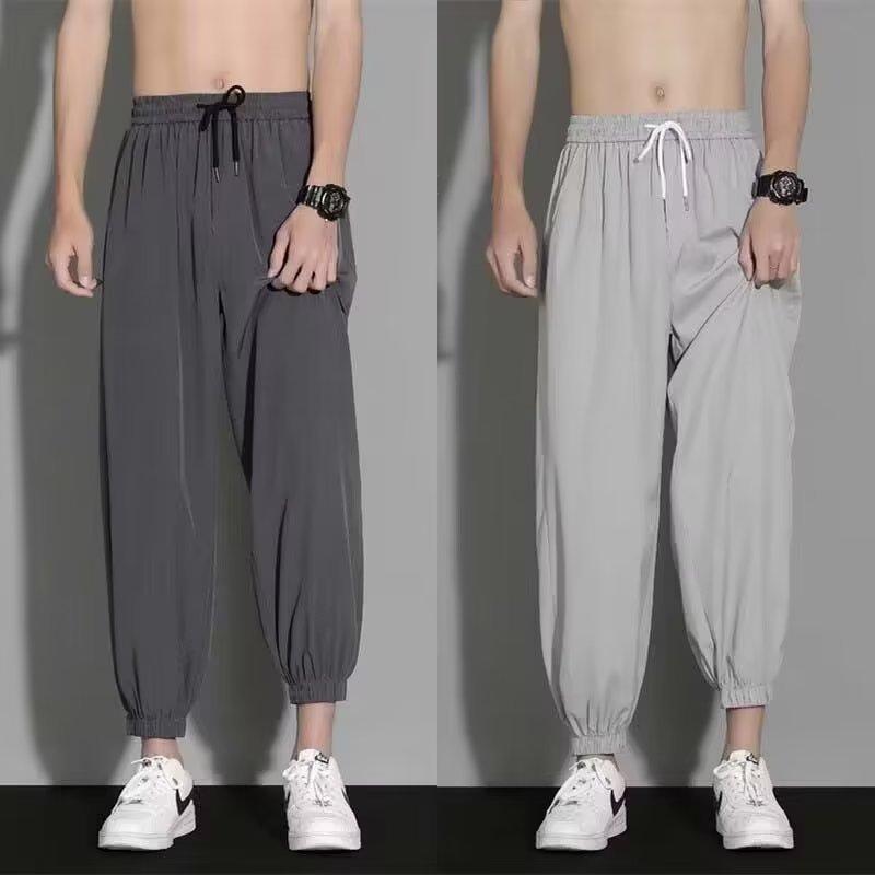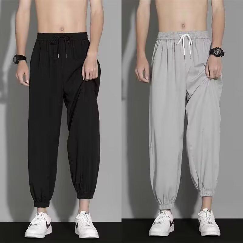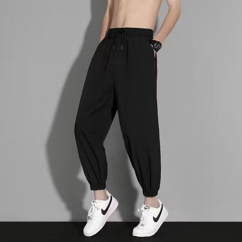 Pantalones casuales de moda nueva de primavera y verano 2020 para hombre, pantalones largos con cordón ajustable para combinar con todo y tobilleras