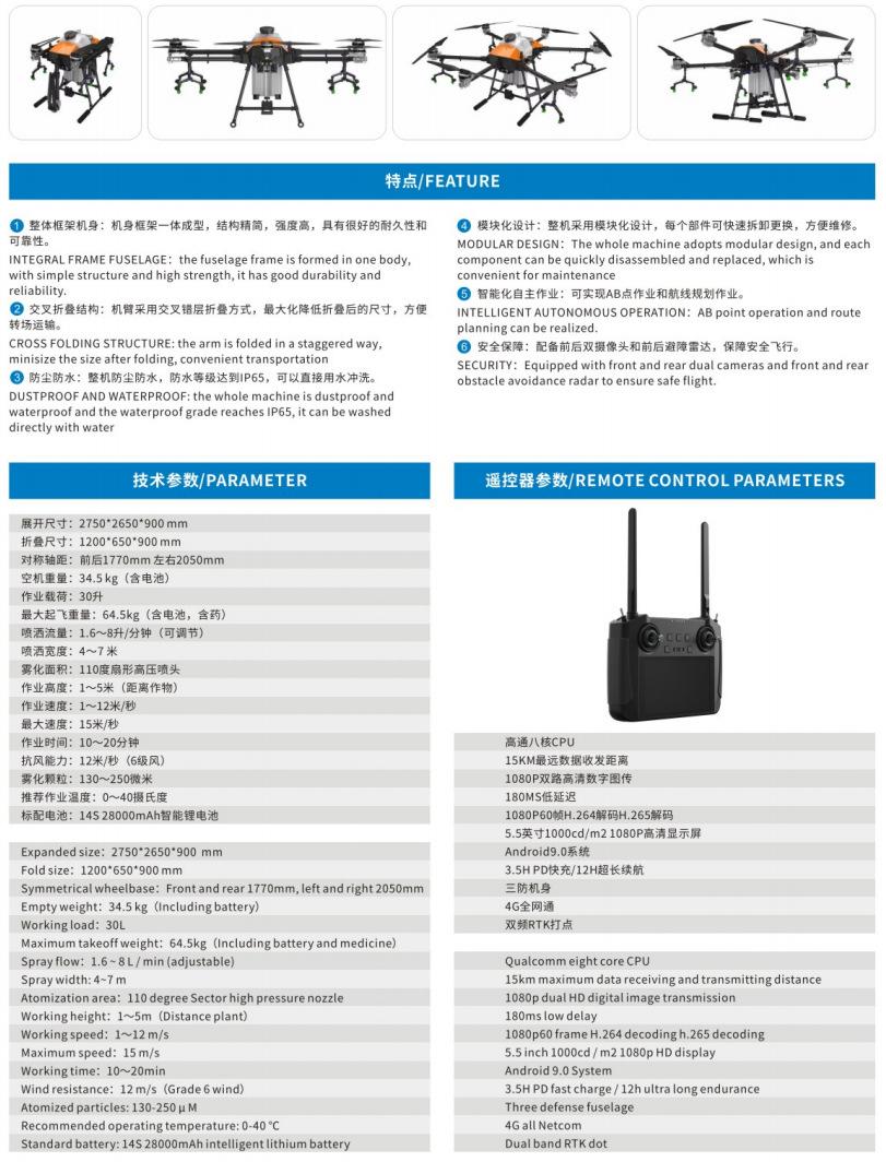 A: El rango de operación depende de la capacidad de la batería, la carga útil de líquido y la velocidad de vuelo. El área de operación con una sola carga de los modelos comunes es usualmente10-50 mu。