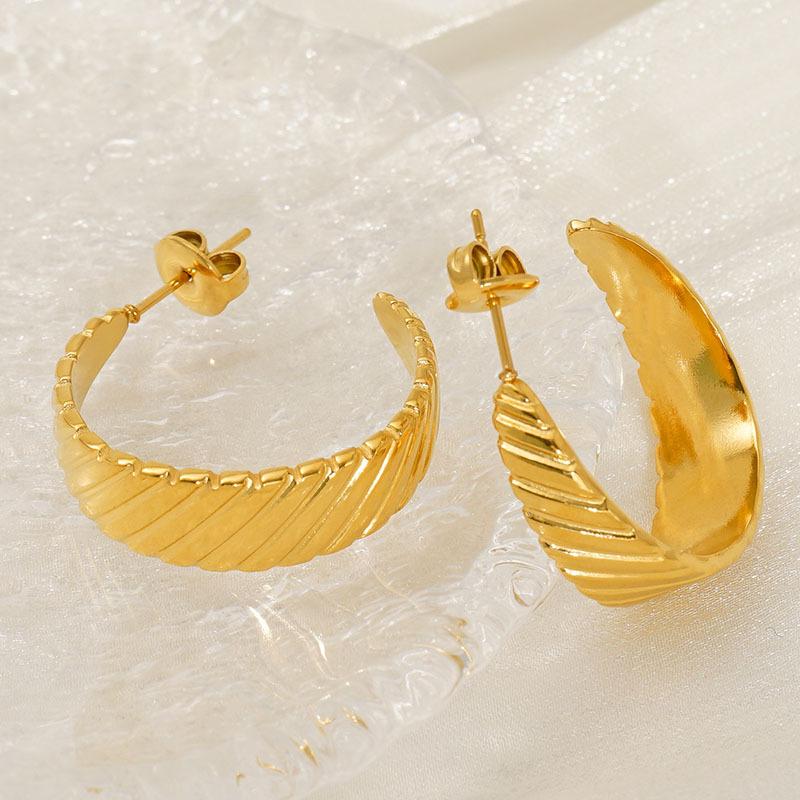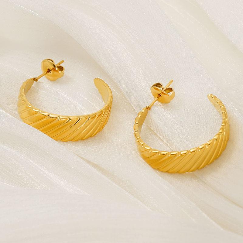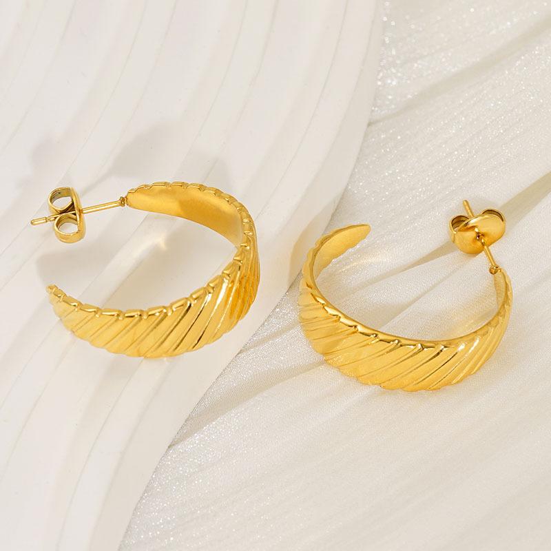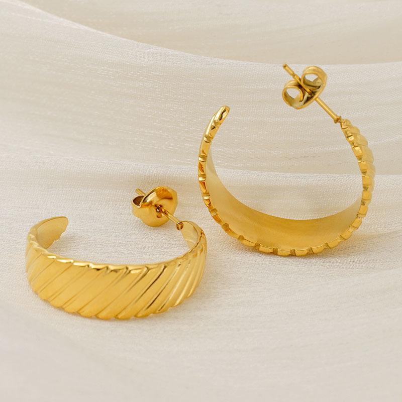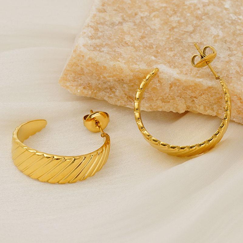 Nuevos Aretes Versátiles Transfronterizos Europeos y Americanos de Acero Inoxidable Simple Electrochapado en Oro de 18K Estilo Ins Retro Aretes de Diseño Geométrico