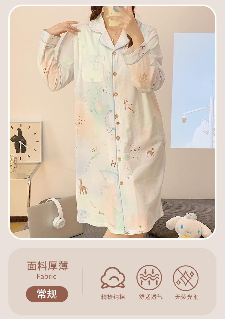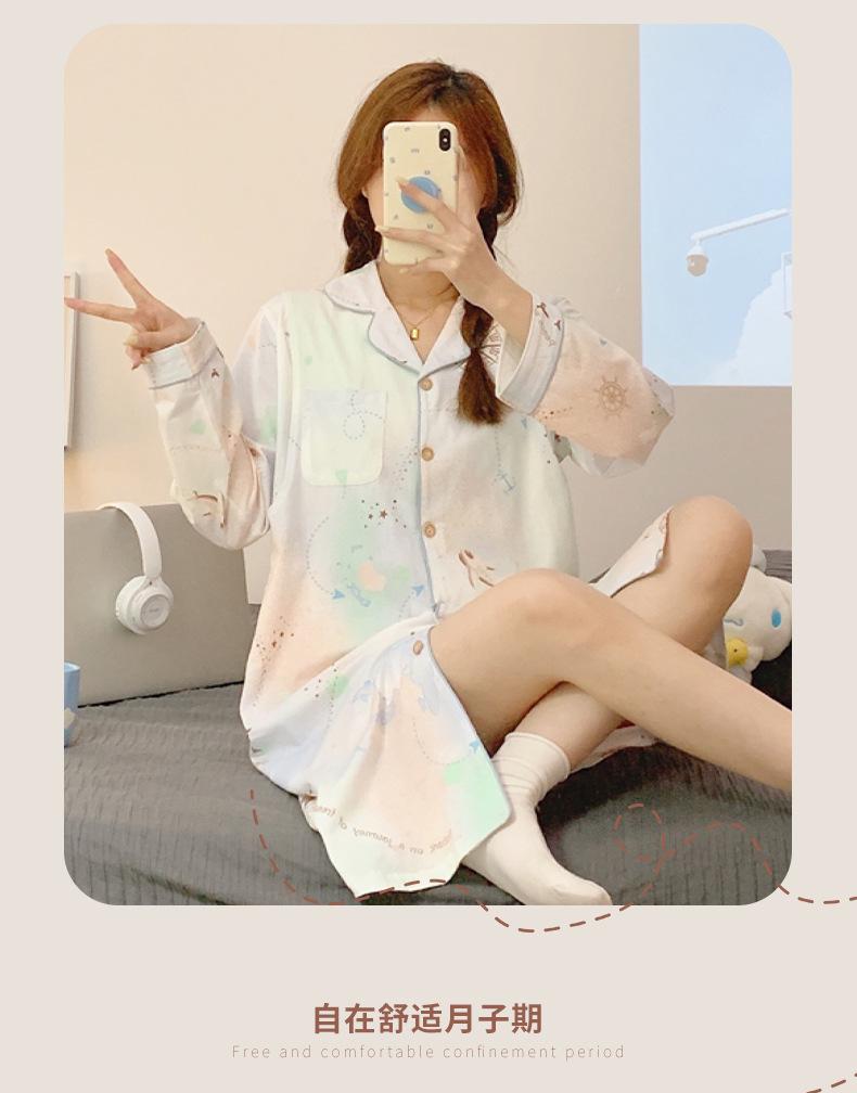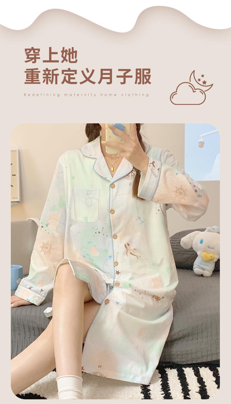 Nuevo vestido de maternidad de algodón puro primavera y otoño camisón de lactancia posparto verano pijama de maternidad delgado vestido largo de confinamiento