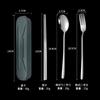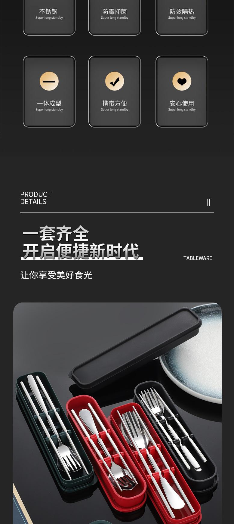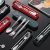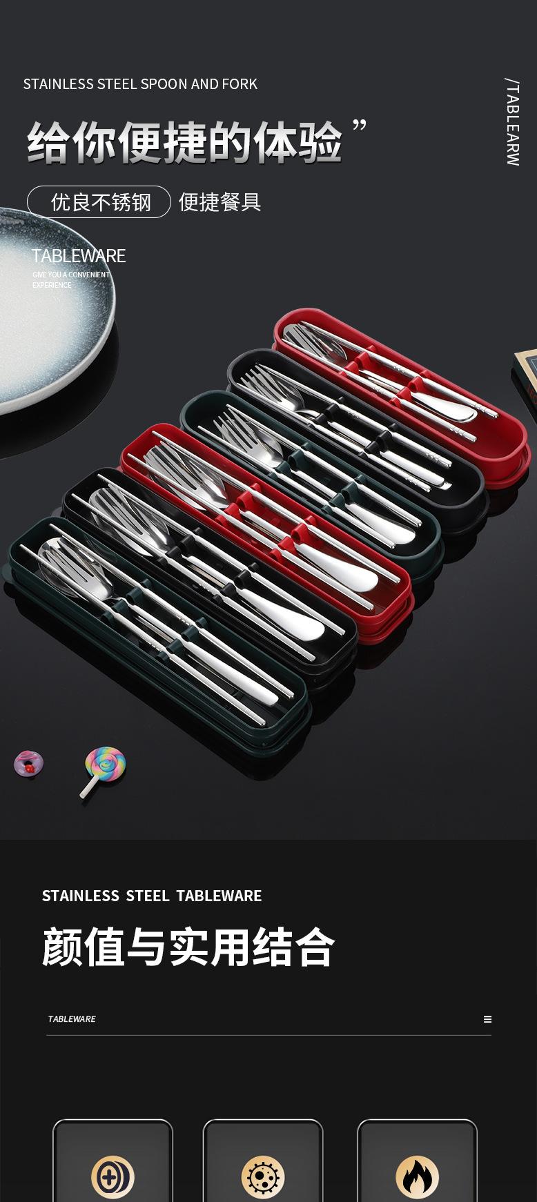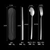 Juego de tres piezas de cubiertos portátiles de acero inoxidable, regalo para actividad de empresa, impresión de logotipo, traje de tenedor, cuchara, palillos para estudiante