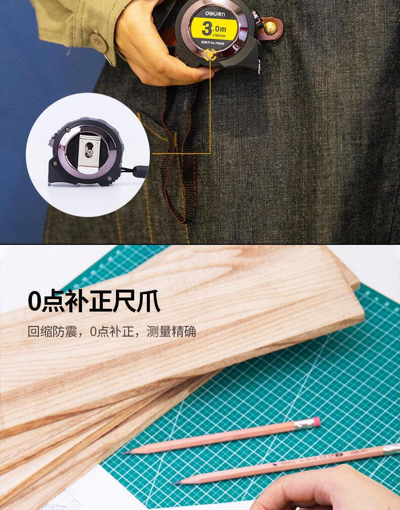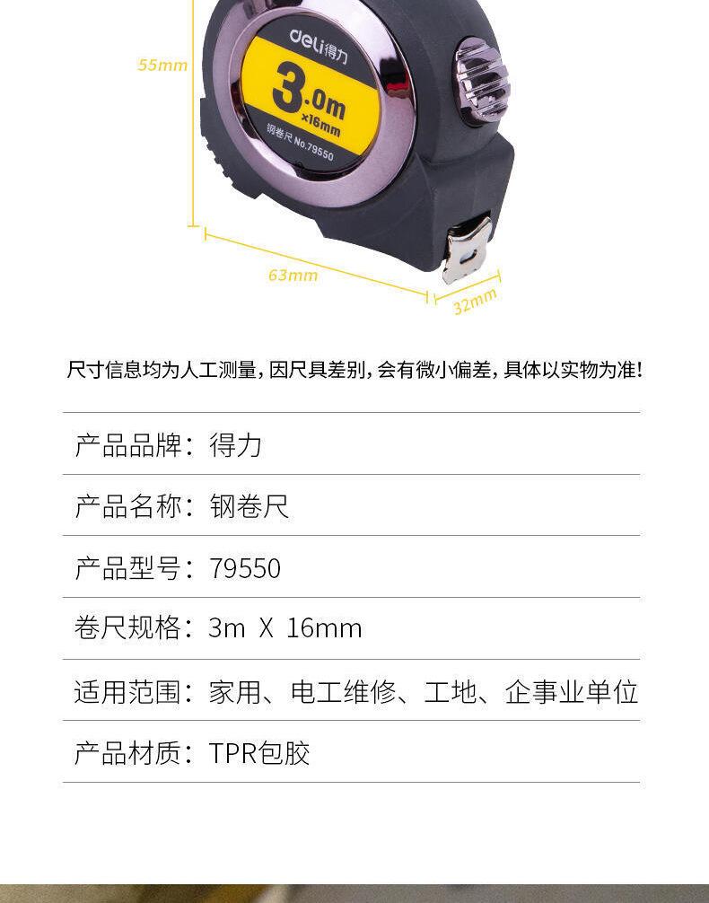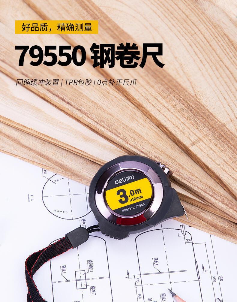 Deli 79550 Cinta Métrica de Acero Autoblocante 3m Bloqueo Cinta Métrica de Acero Oficina Hogar Herramienta de Medición de Alta Precisión
