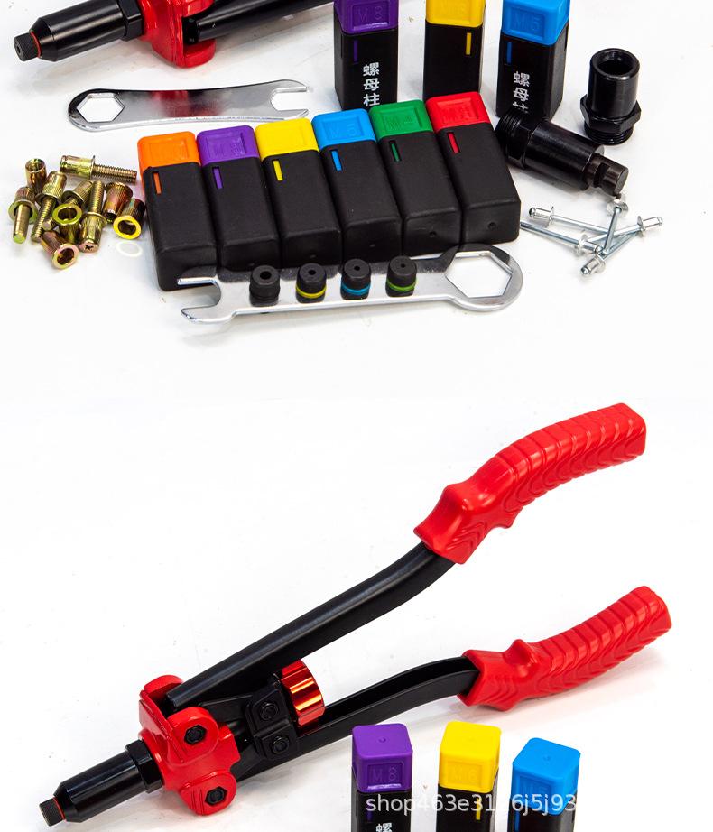 Pistola de Taponadora Manual para Ahorrar Trabajo Alicates para Tuercas Pistola de Tracción Remachadora Juego de Remachadora Manual Automática de Cuatro Usos Tuerca Remache