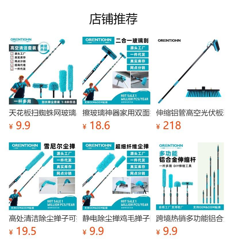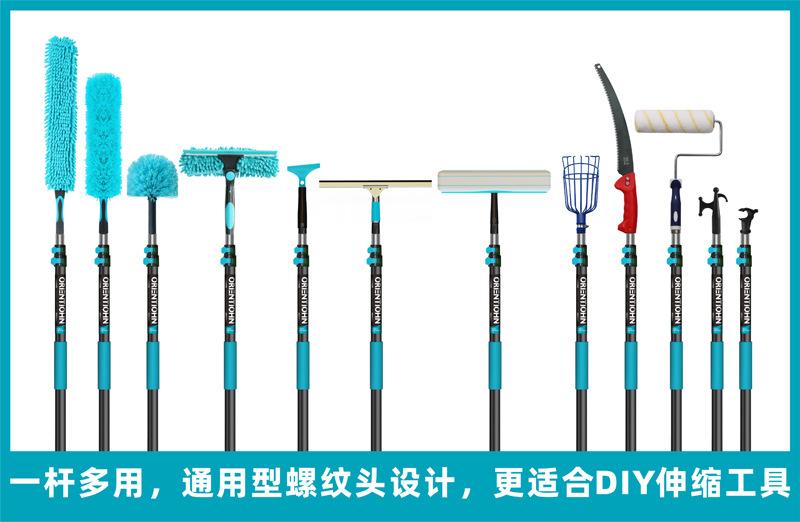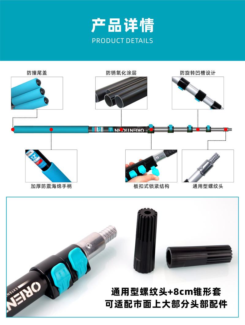 Varilla de revestimiento de 7.2 metros de venta caliente transfronteriza, varilla telescópica multifuncional de aleación de aluminio, varilla de extensión de limpieza, cabezal roscado universal