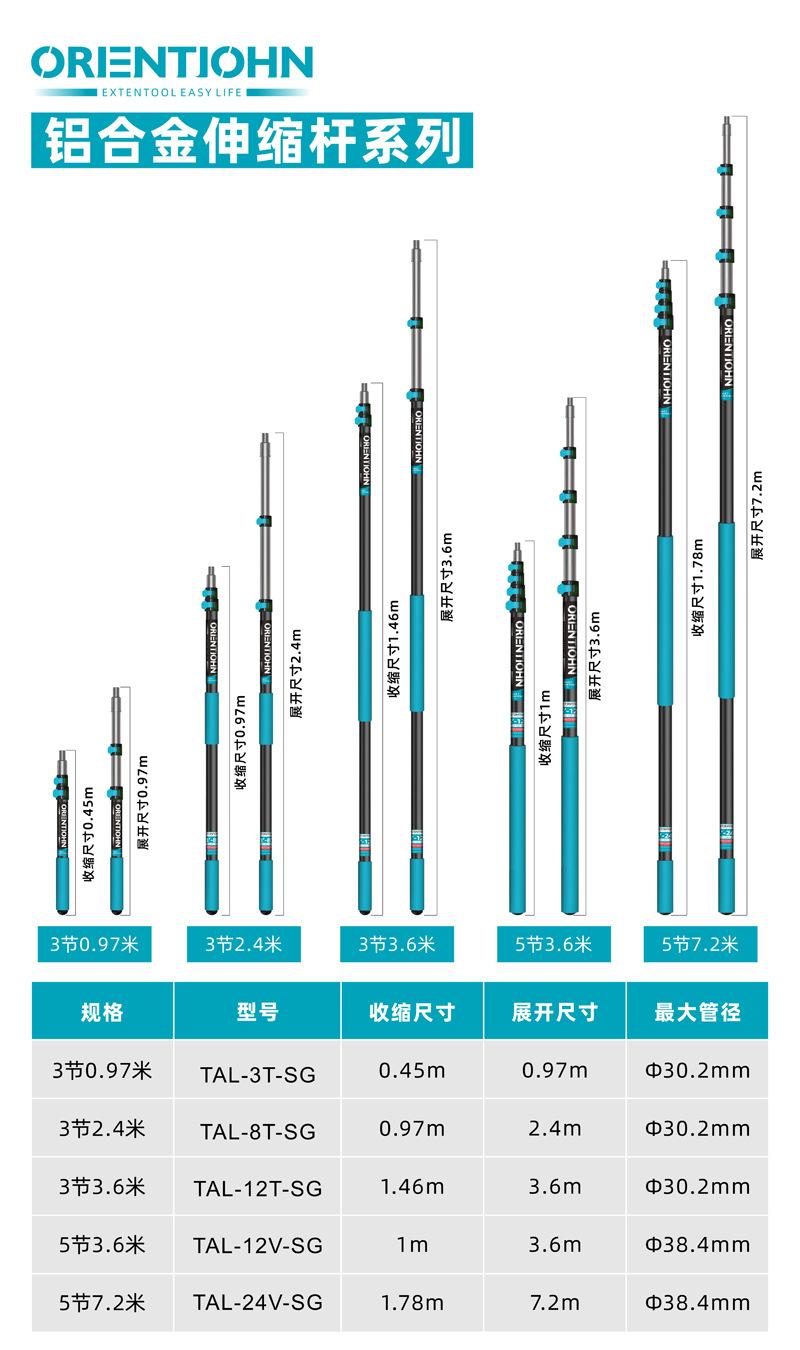 【5 sections 7.2m】aluminum alloy telescopic pole