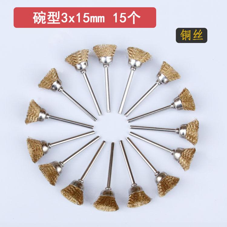 Yellow; Bowl-type 3x15 copper wire brush 15-piece set