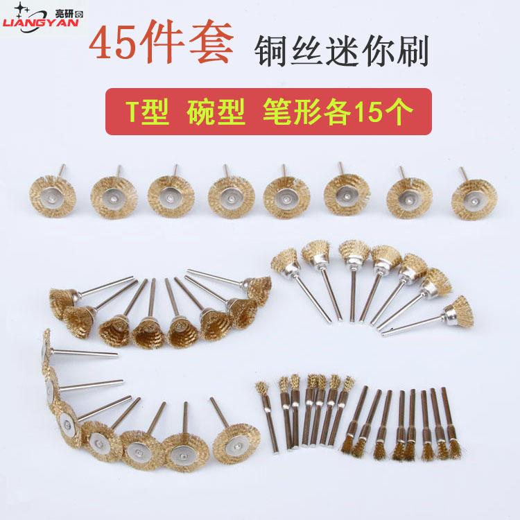 Juego de 45 piezas cepillo de copa de alambre de cobre tipo bolígrafo cepillo tipo T mini cepillo de alambre tallado en madera tallado de raíz pulido de ranuras rueda de alambre