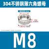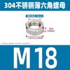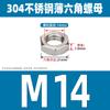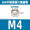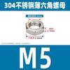 Tuerca hexagonal fina de acero inoxidable 304 tuerca fina tuerca fina plana M3M4M5M6M8M10M12M14
