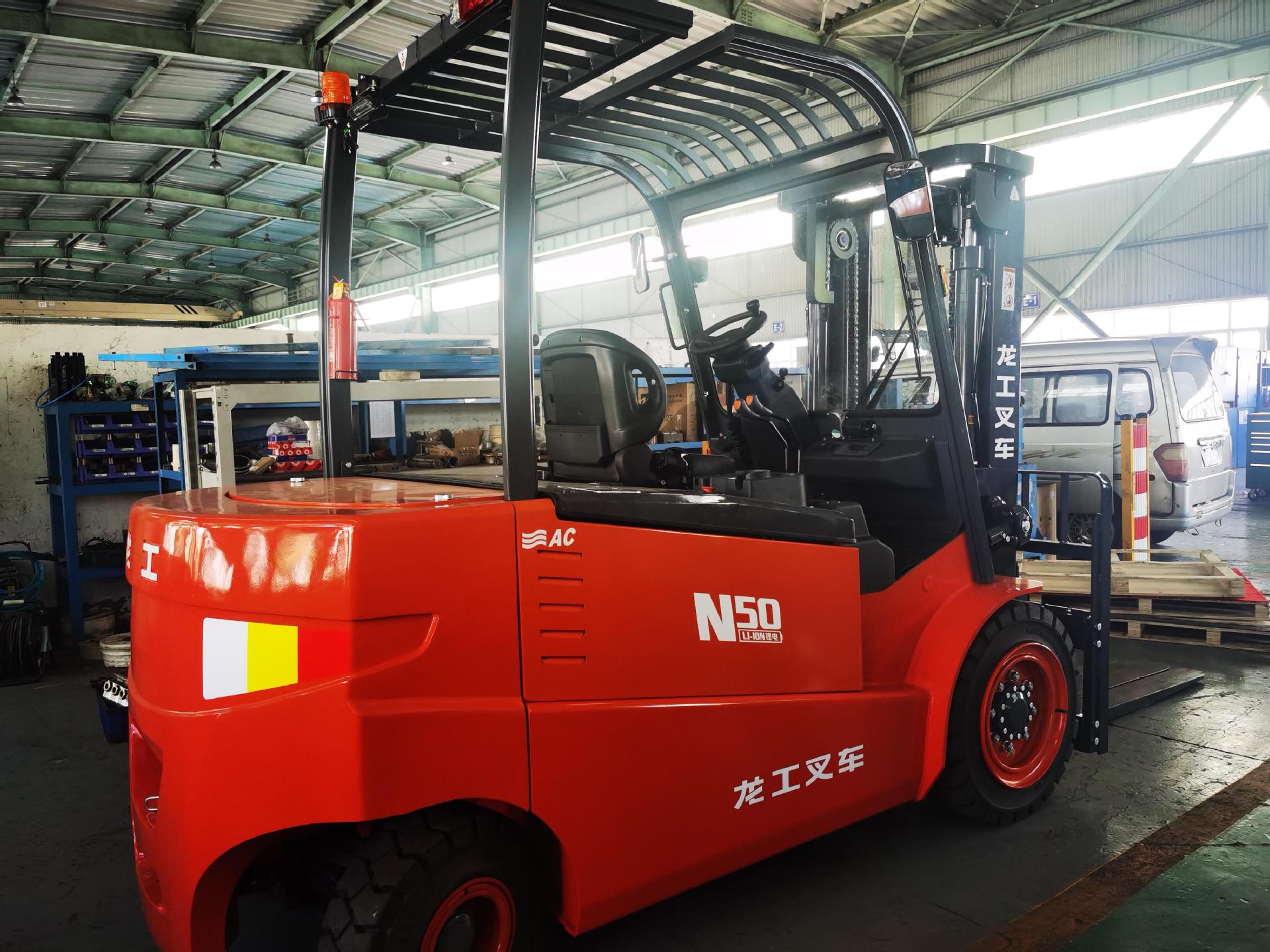 Montacargas Eléctrico de Ácido de Plomo de 5 Toneladas Lonking Apilador Eléctrico de Cuatro Ruedas con Conductor Montacargas de Elevación Hidráulica para Carga y Descarga