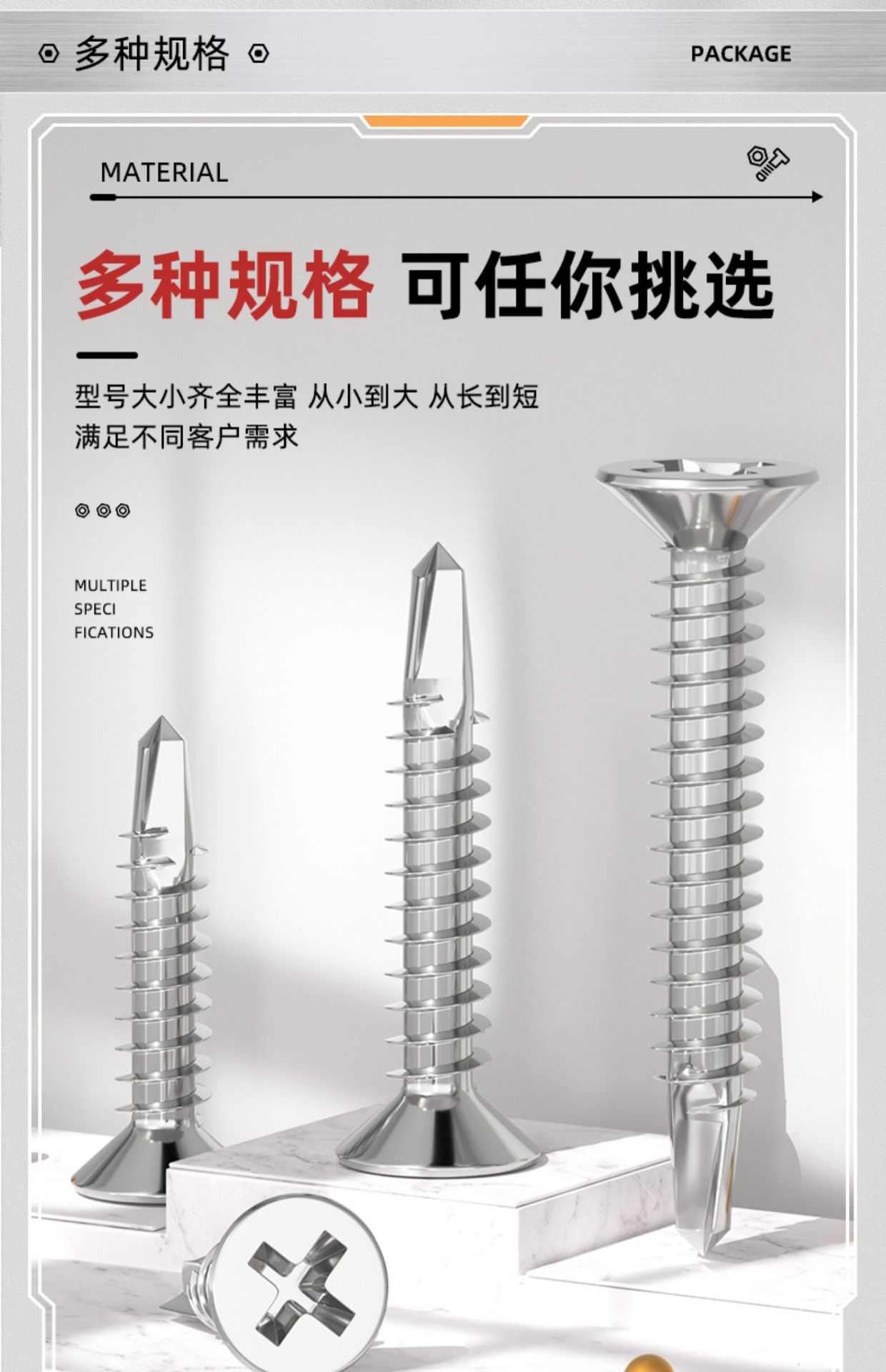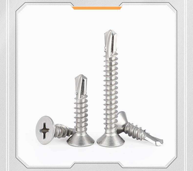 Tornillo autoperforante de cabeza avellanada de acero inoxidable 410/304, cabeza plana cruzada, autoperforante cola de taladro, para teja de acero prepintado M3.5M6.3