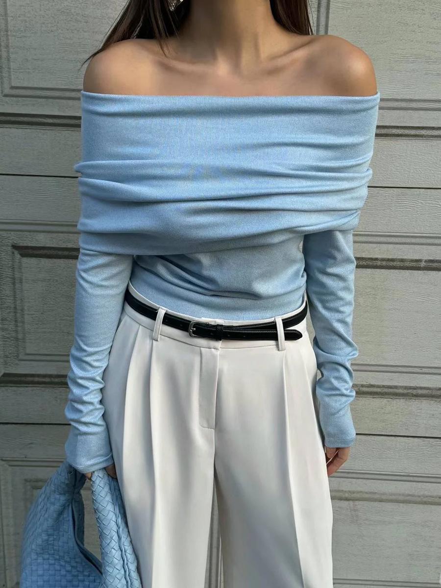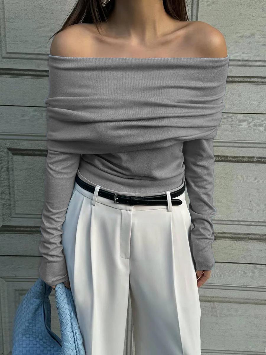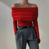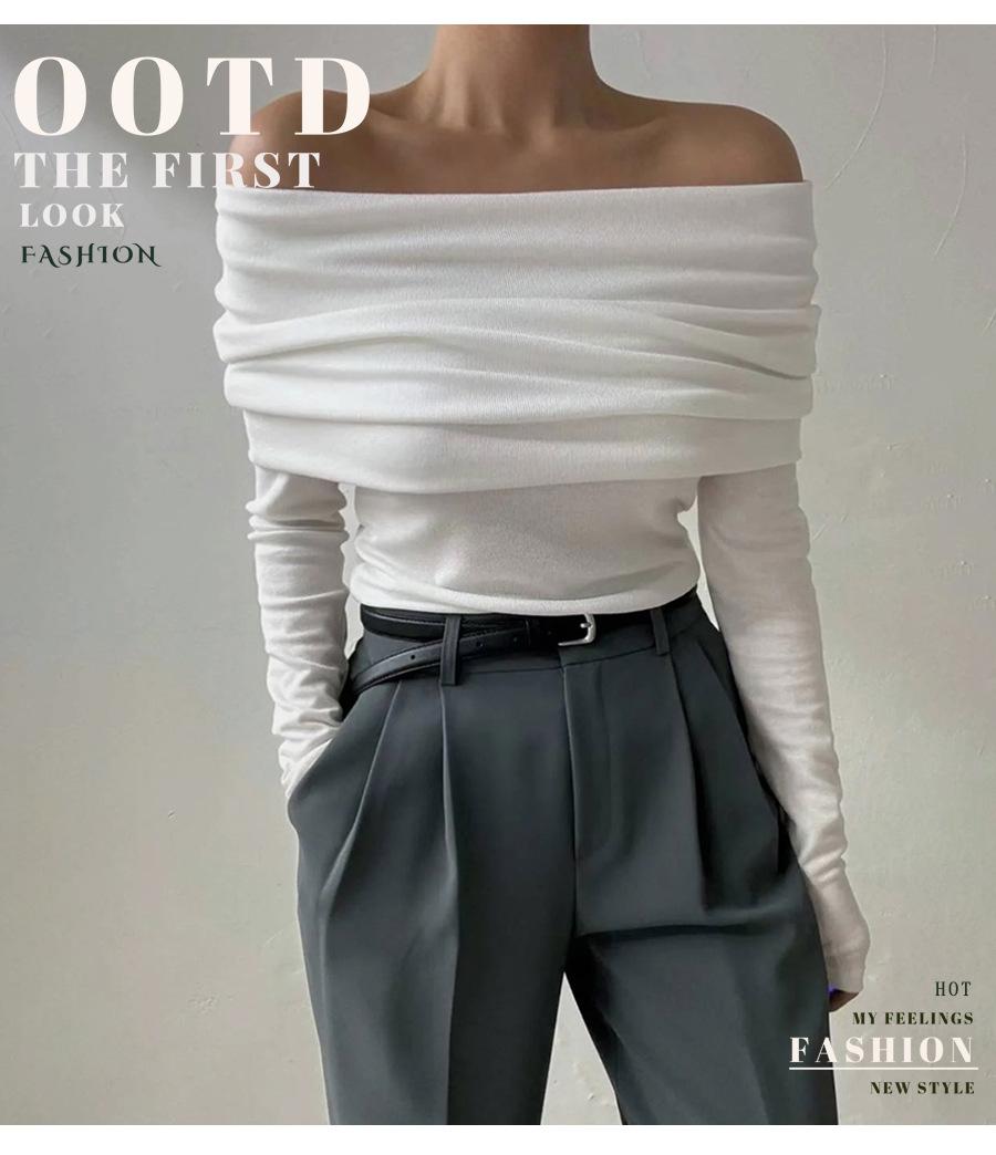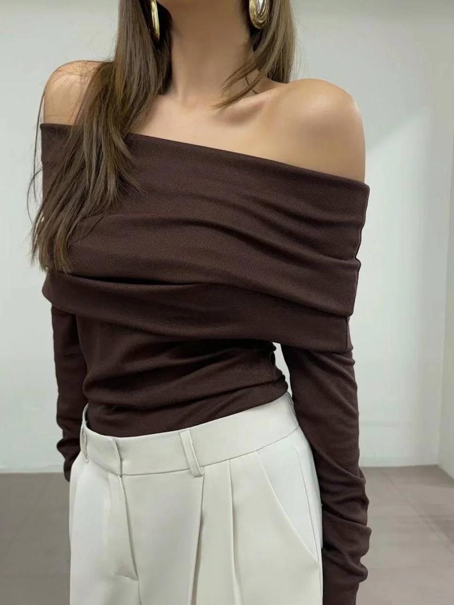 Transfronterizo 2024 Nuevo Estilo Europeo y Americano Hombro Descubierto Temperamento Diseño de Hombro Sentido Ajustado Adelgazante Envolvente Pecho Tejido Base Mujeres