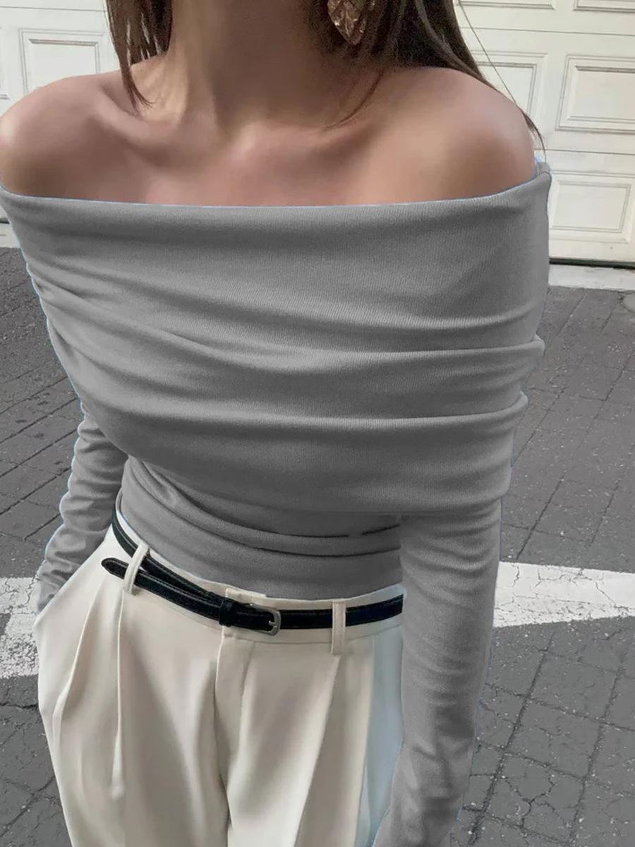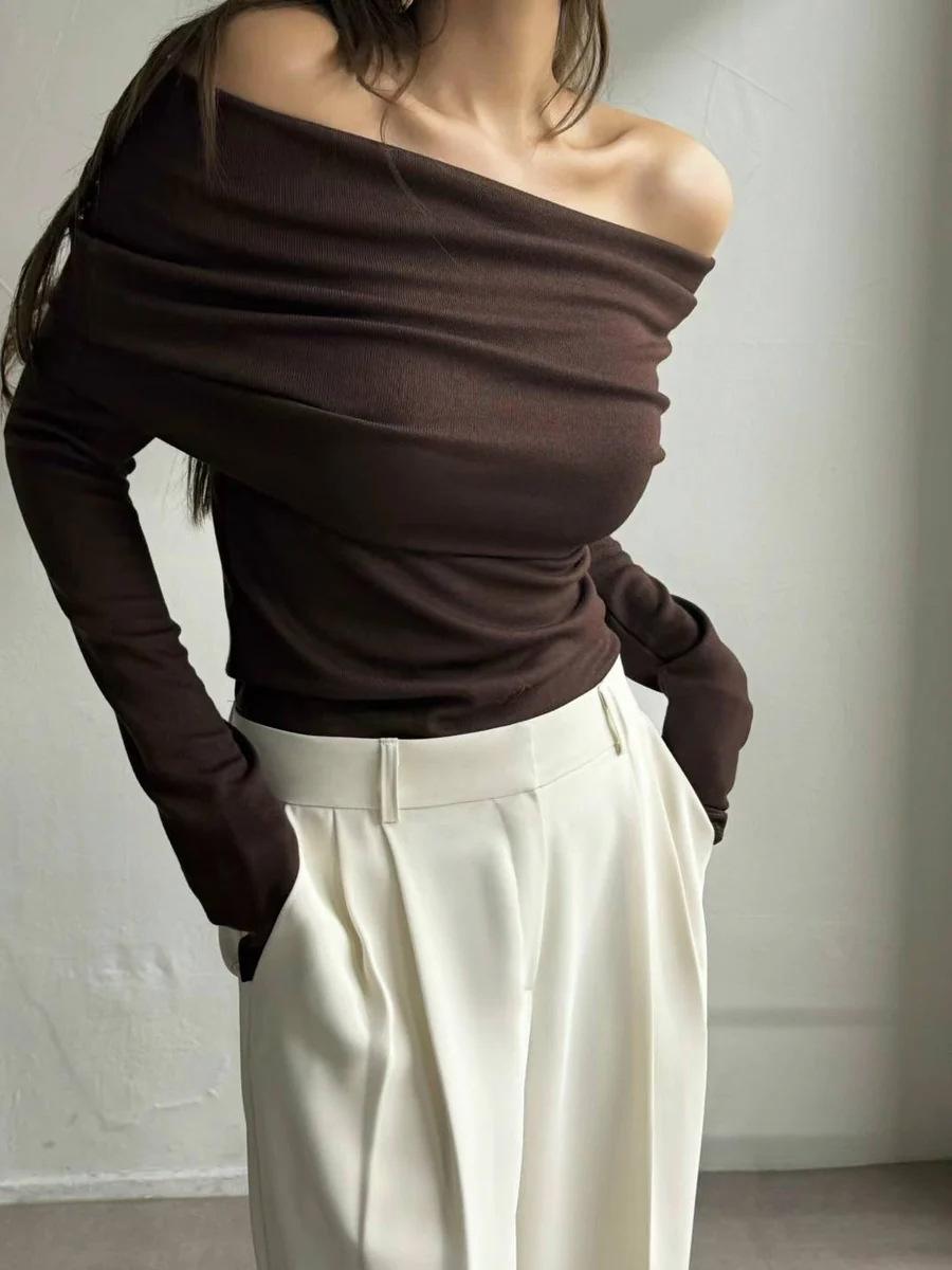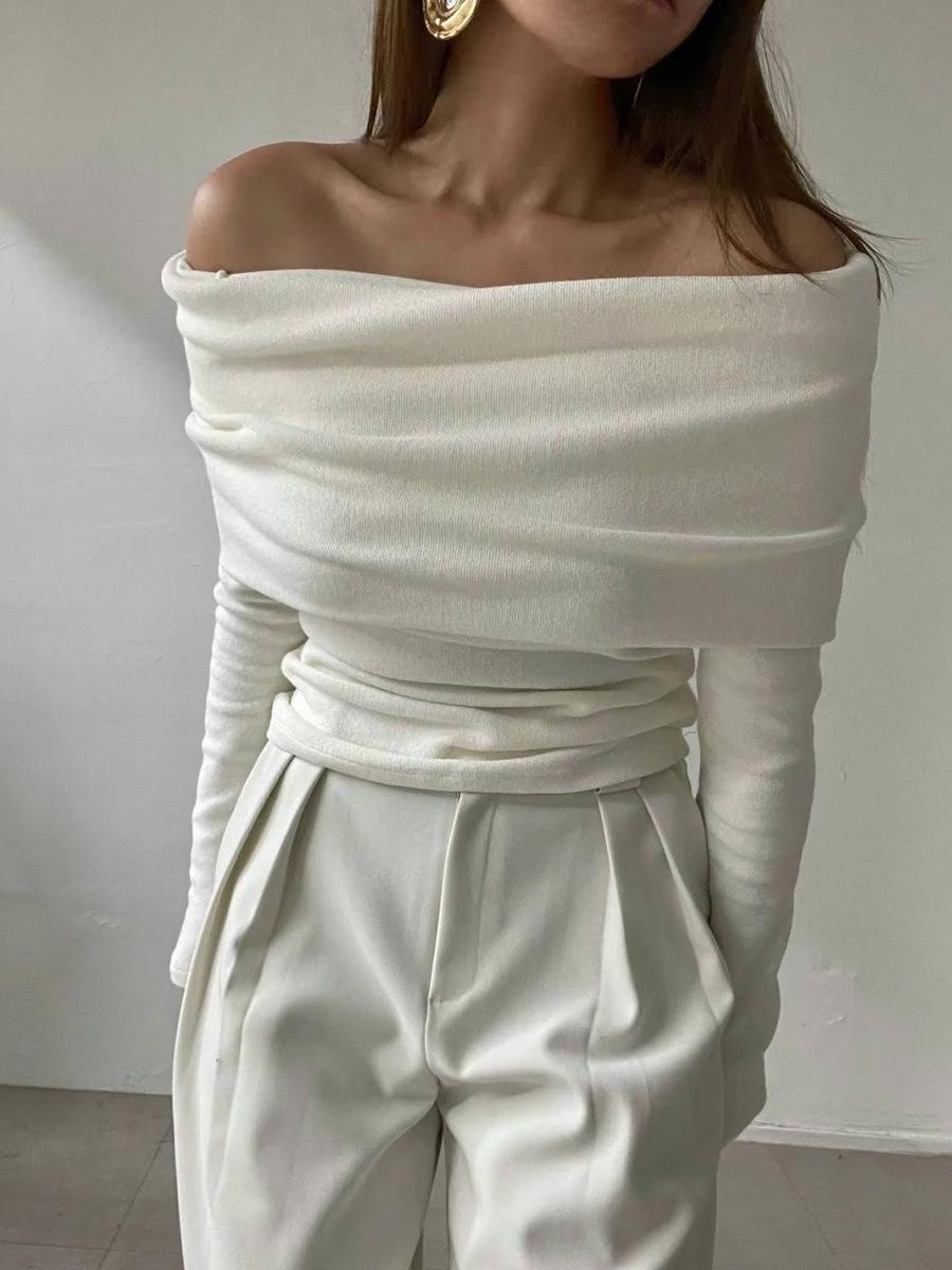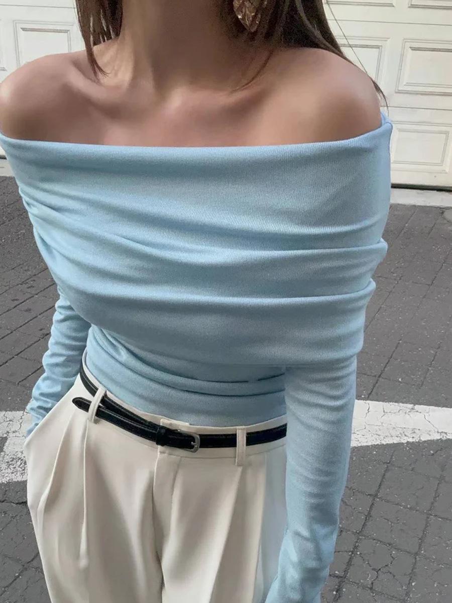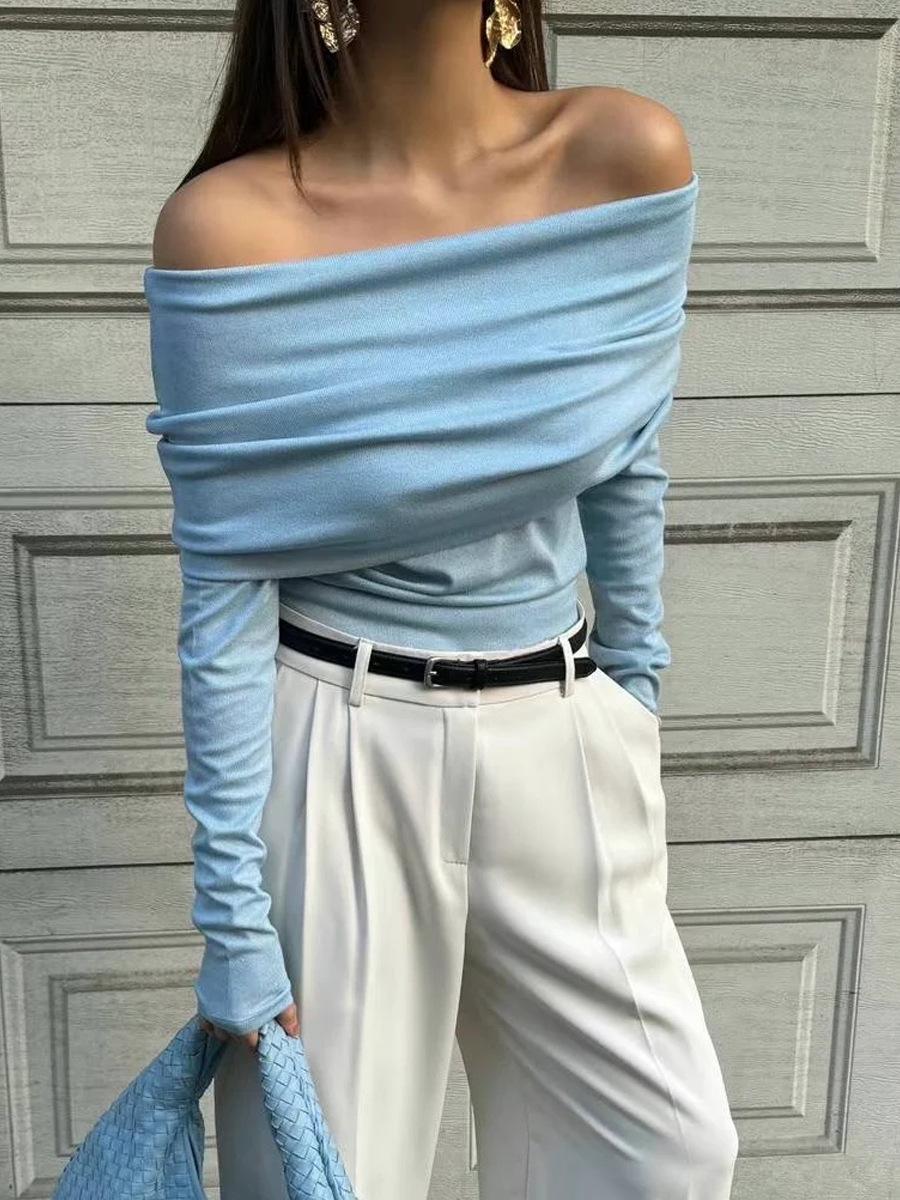 Transfronterizo 2024 Nuevo Estilo Europeo y Americano Hombro Descubierto Temperamento Diseño de Hombro Sentido Ajustado Adelgazante Envolvente Pecho Tejido Base Mujeres