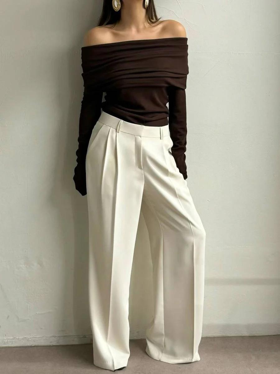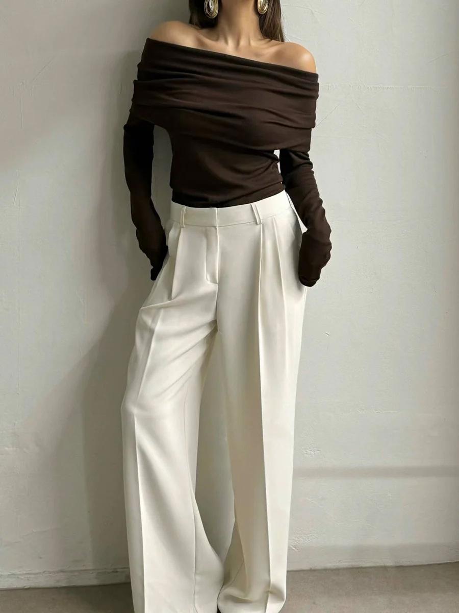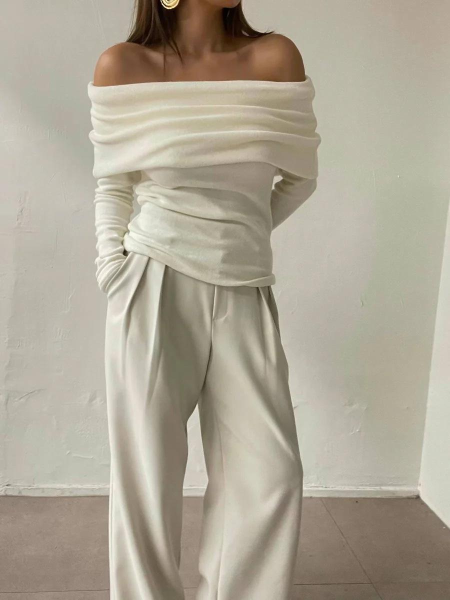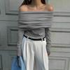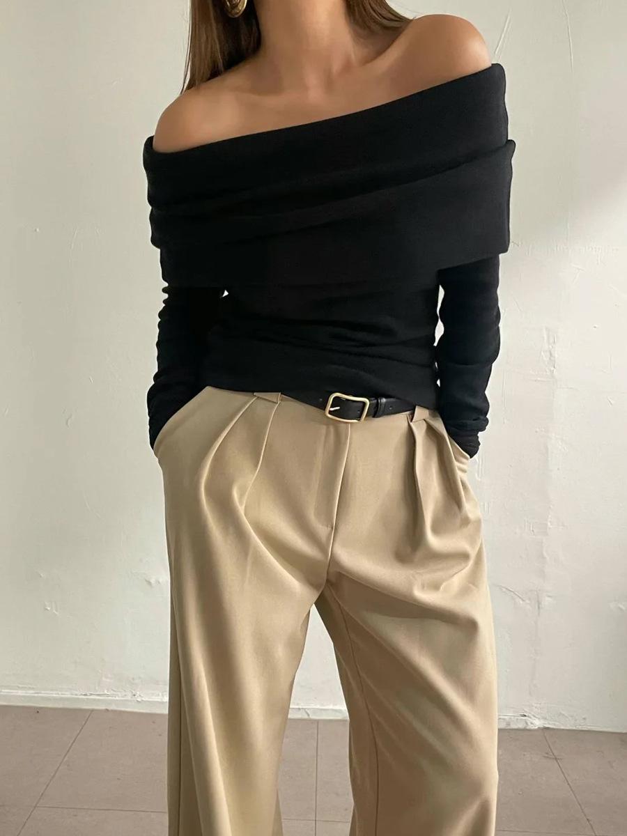 Transfronterizo 2024 Nuevo Estilo Europeo y Americano Hombro Descubierto Temperamento Diseño de Hombro Sentido Ajustado Adelgazante Envolvente Pecho Tejido Base Mujeres