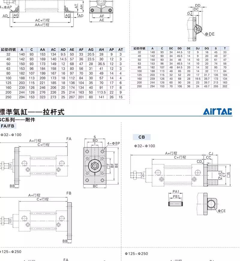 Cilindro AIRTAC original SC200 * 200*225*250*275*300*350-s
