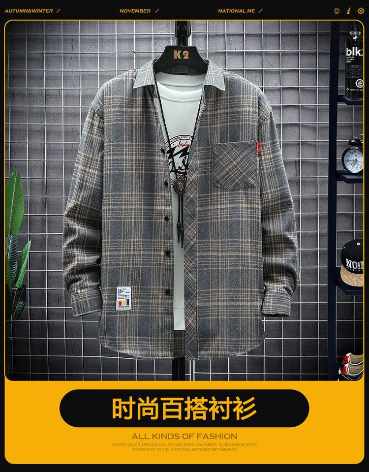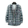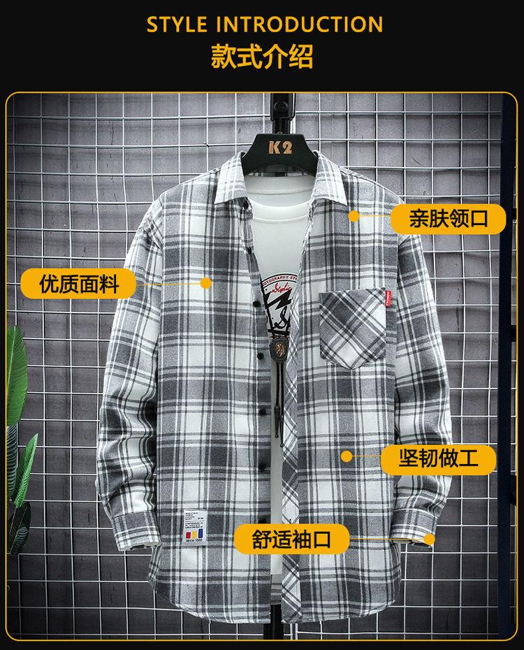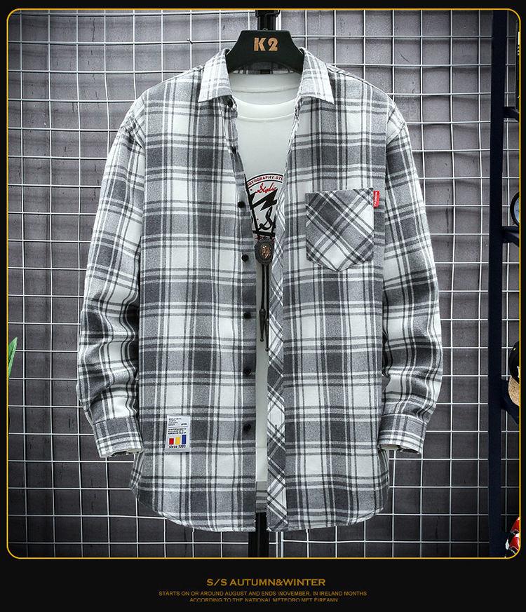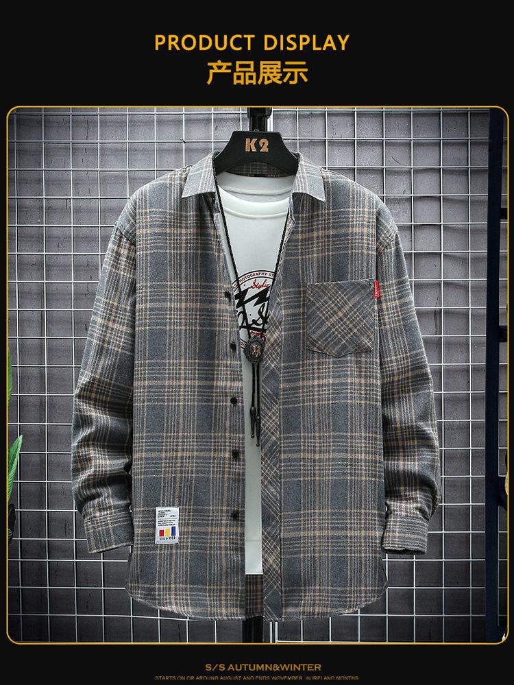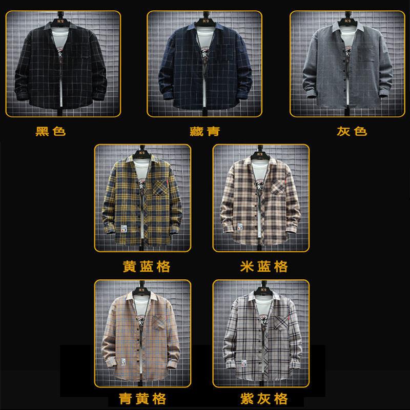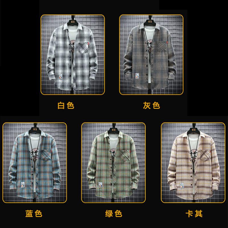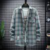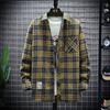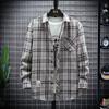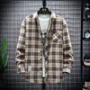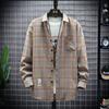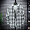 Camisa a cuadros de algodón lijado nueva de primavera y otoño para hombre, moderna, coreana, casual, holgada, delgada, de manga larga, tipo chaqueta
