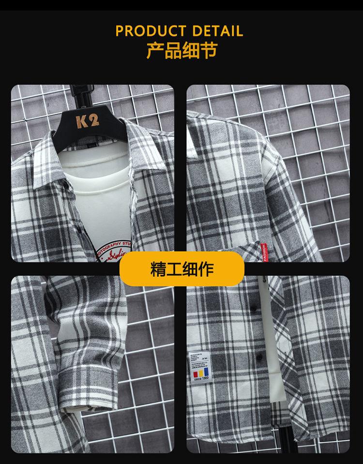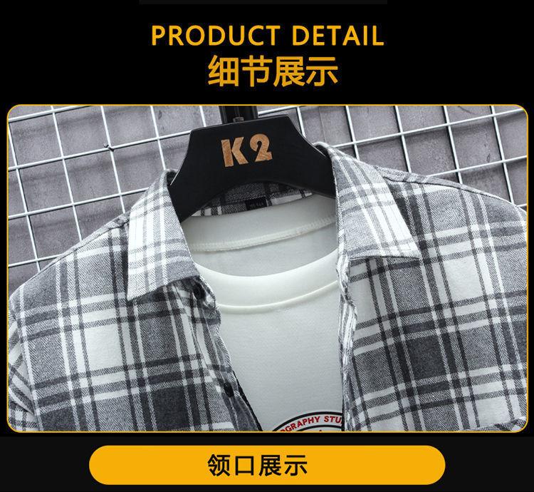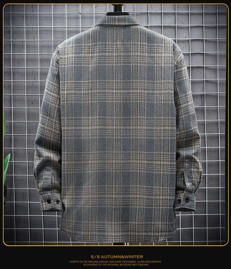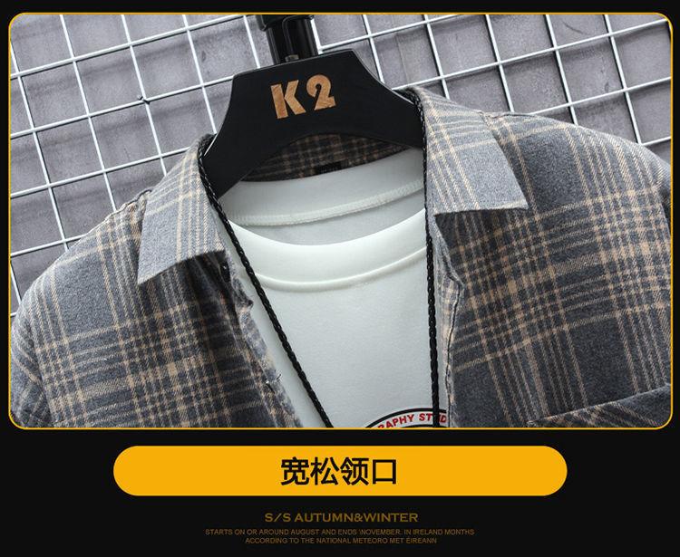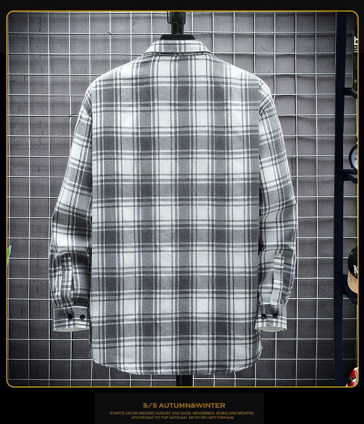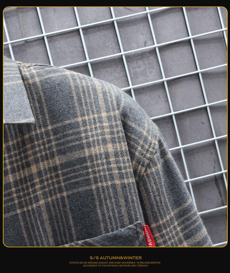 Camisa a cuadros de algodón lijado nueva de primavera y otoño para hombre, moderna, coreana, casual, holgada, delgada, de manga larga, tipo chaqueta