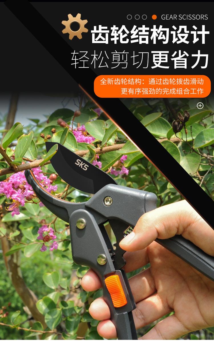 Procesamiento profesional personalizado SK5 acero inoxidable tijeras de podar árboles frutales tijeras de jardín recolección de flores y frutos tijeras de podar multifuncionales