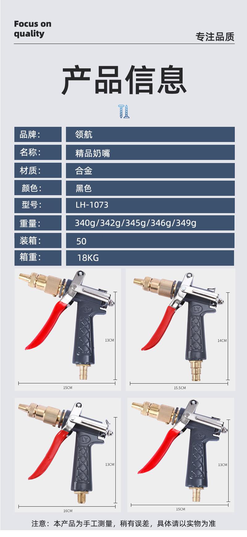 Los fabricantes suministran pistolas de agua de alta presión para lavado de automóviles con varilla de extensión de tipo chupete para uso doméstico, de aluminio recubierto de cobre y metal esmerilado galvanizado.